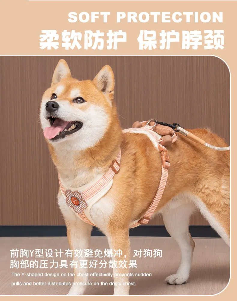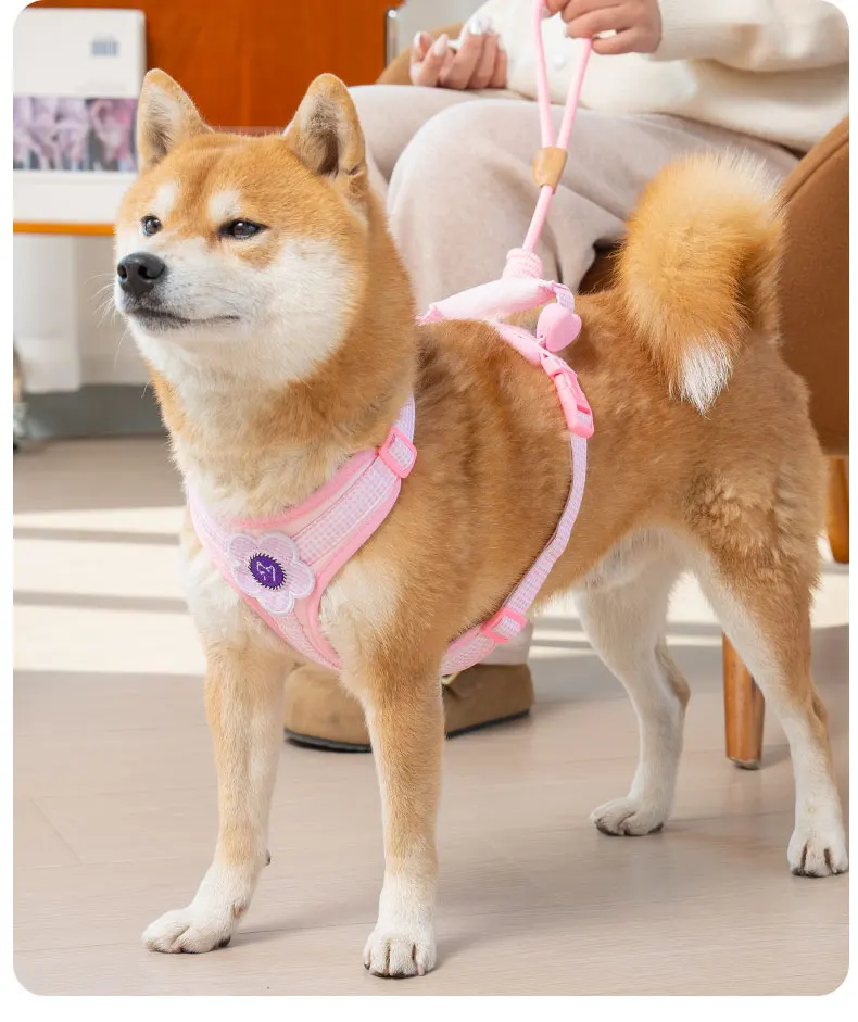 Equipado con un mango de entrenamiento de control suave, este arnés proporciona una guía suave durante los paseos.