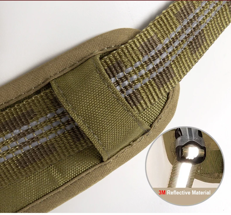 Material:Correas de hilo de nailon/reflección 3M/aleación de aluminio/hebilla Duraflex