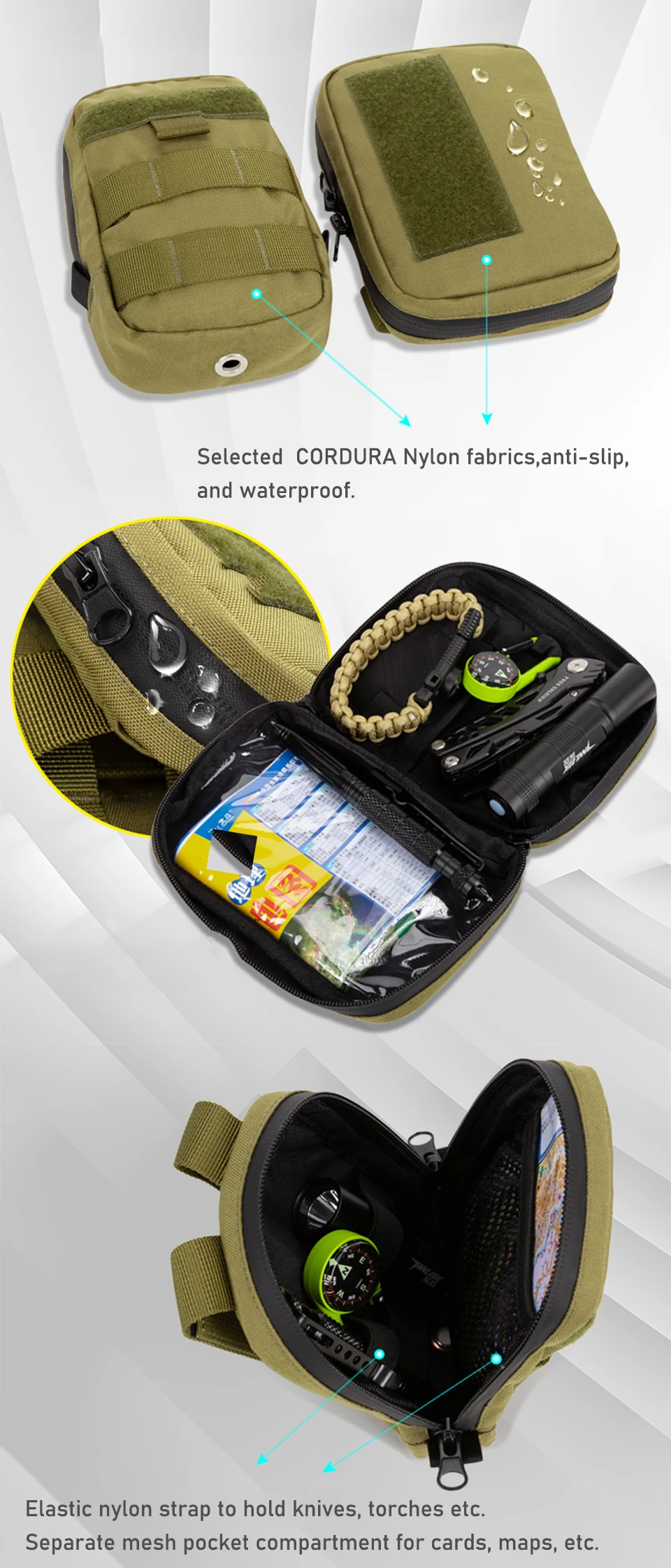 La superficie de la mochila está hecha de tela DuPont, que es resistente a rayones y desgaste, impermeable y resistente al moho, y puede resistir la prueba en entornos extremos.