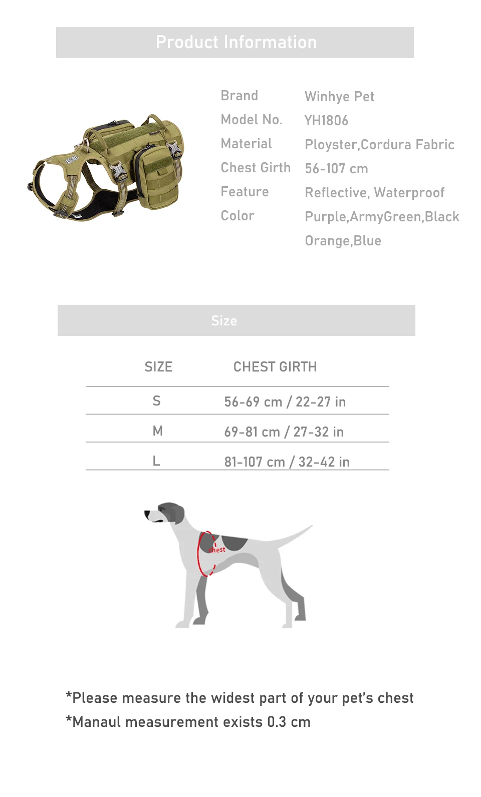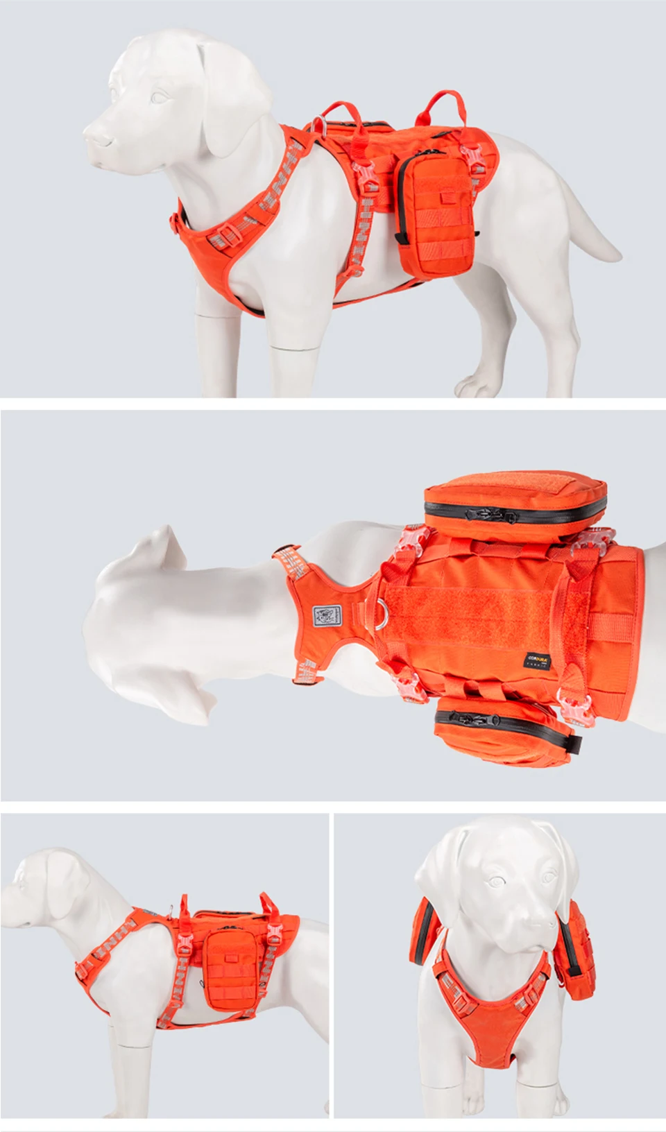 Ajuste las tres hebillas, ajuste la longitud, fácil de operar, haga que el perro sea más cómodo de usar, se ajuste mejor a la forma del cuerpo del perro, fuerza más uniforme, desempeñe el mejor papel de apoyo y función de envoltura, y haga que el perro esté cómodo y menos probable de ser herido