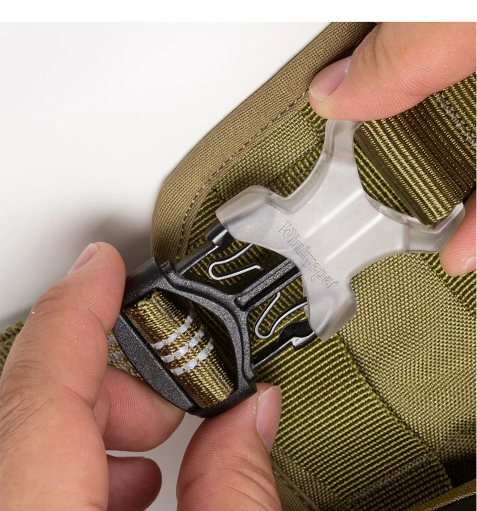 La parte de la hebilla está hecha de material liviano y material de aluminio aeronáutico de alta dureza, peso liviano sin carga para la mascota, liviano y duradero, fácil de poner y quitar.