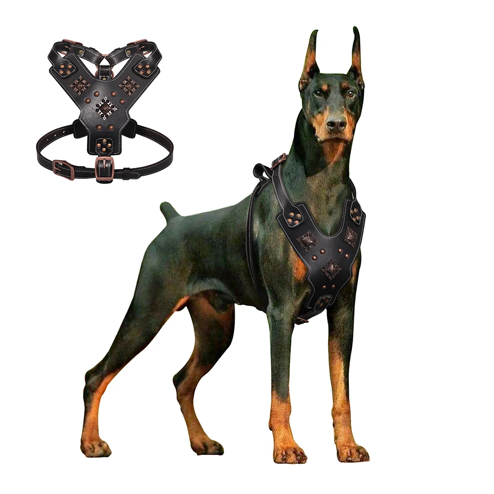 Arnés de cuero auténtico para perros grandes, arnés duradero para mascotas, chaleco de cuero auténtico para perros, arneses de Control rápido para perros grandes, Pastor Alemán