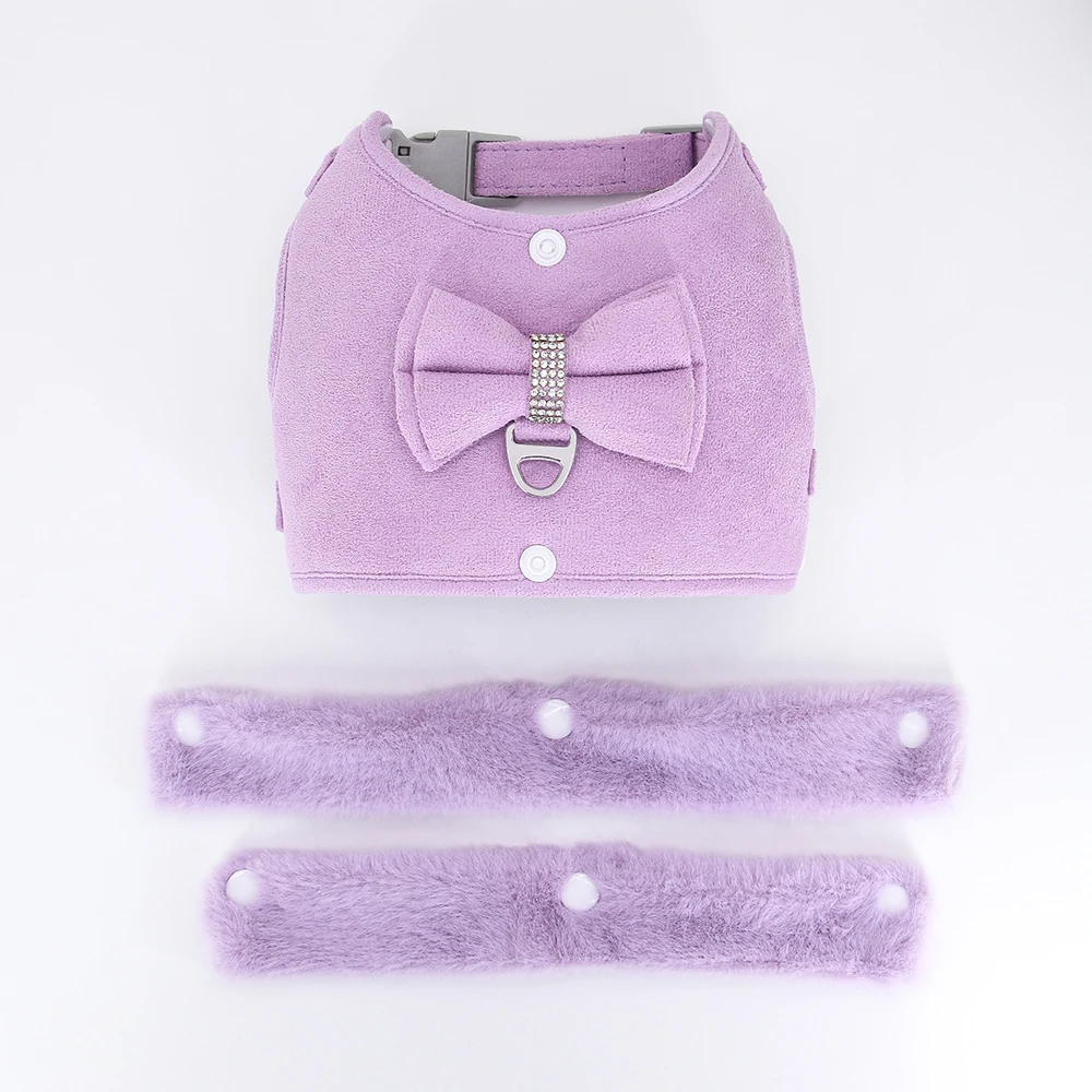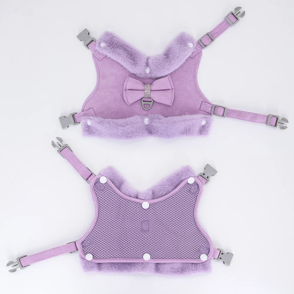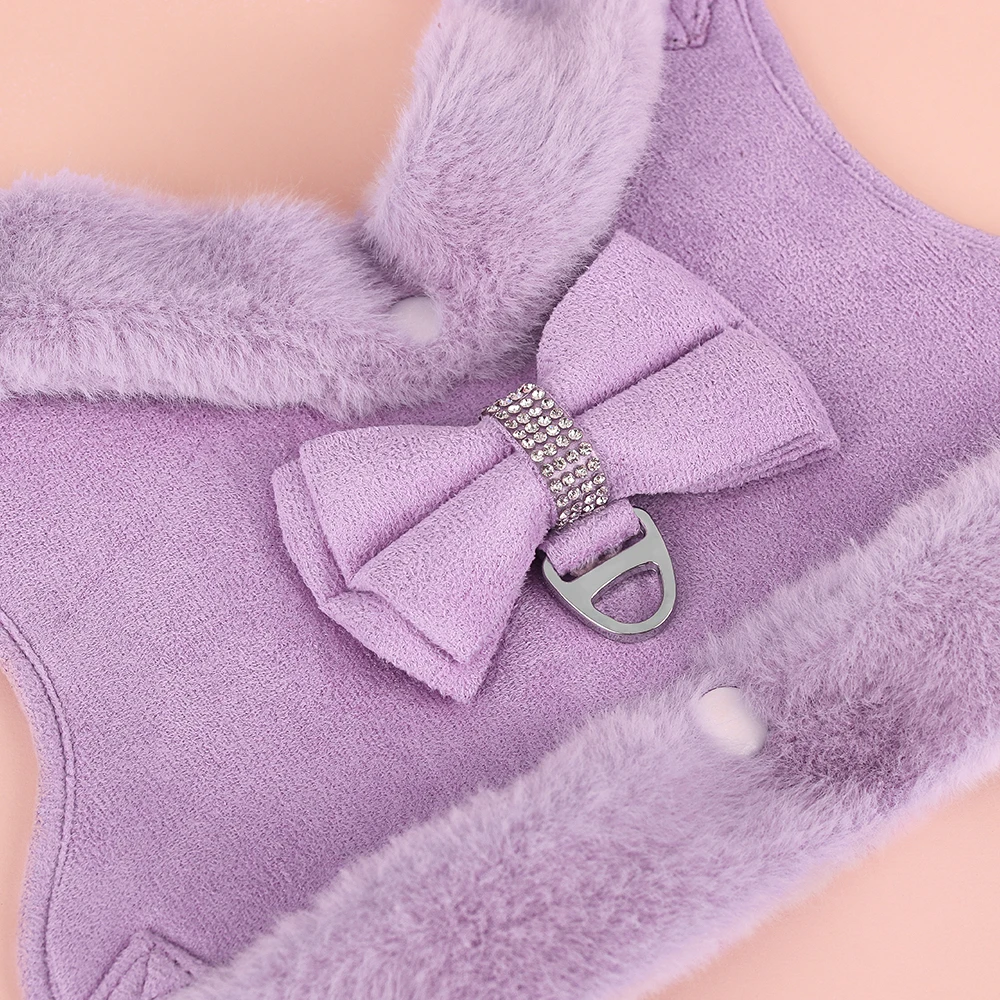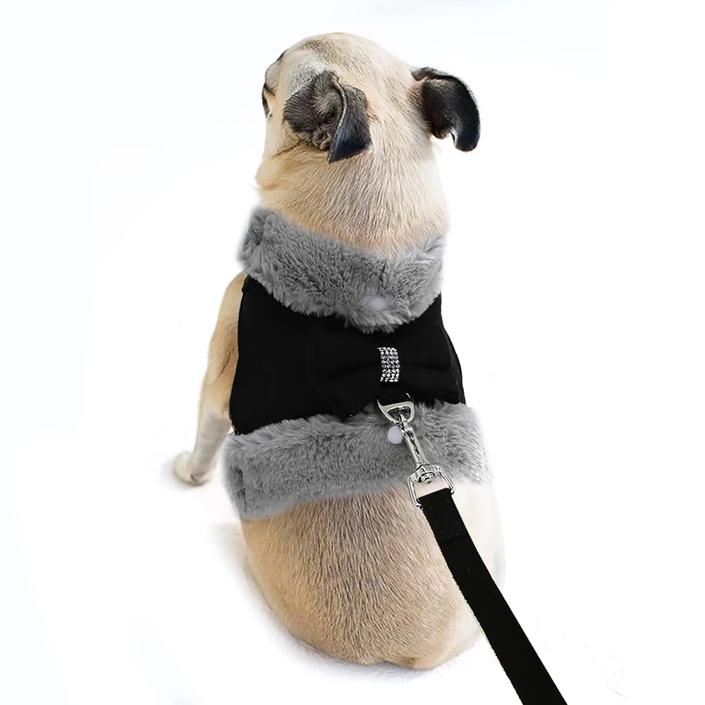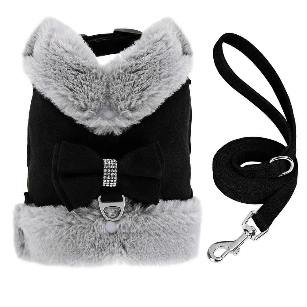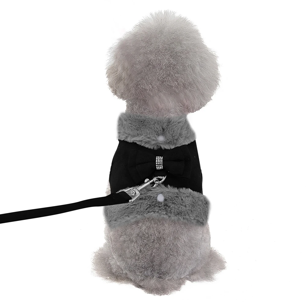 Arnés de piel cálida para perros y cachorros, Correa bonita con lazo para perros y gatos, chaleco acolchado para mascotas con cuerda de plomo a juego para perros y gatos, InviernoColores:Rosa, azul, púrpura, marrón, negro