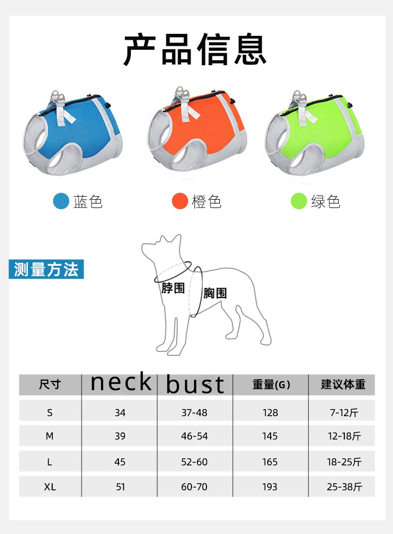 XL:neck:51CM,chest:60-70cm,recommended weight:12.5-19KG