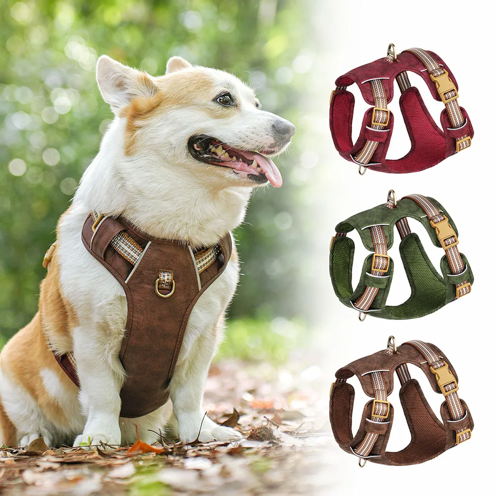 Arnés reflectante impermeable para perros, arnés duradero de nailon para mascotas, sin tirones, ajustable con mango, arnés para perros medianos y grandes