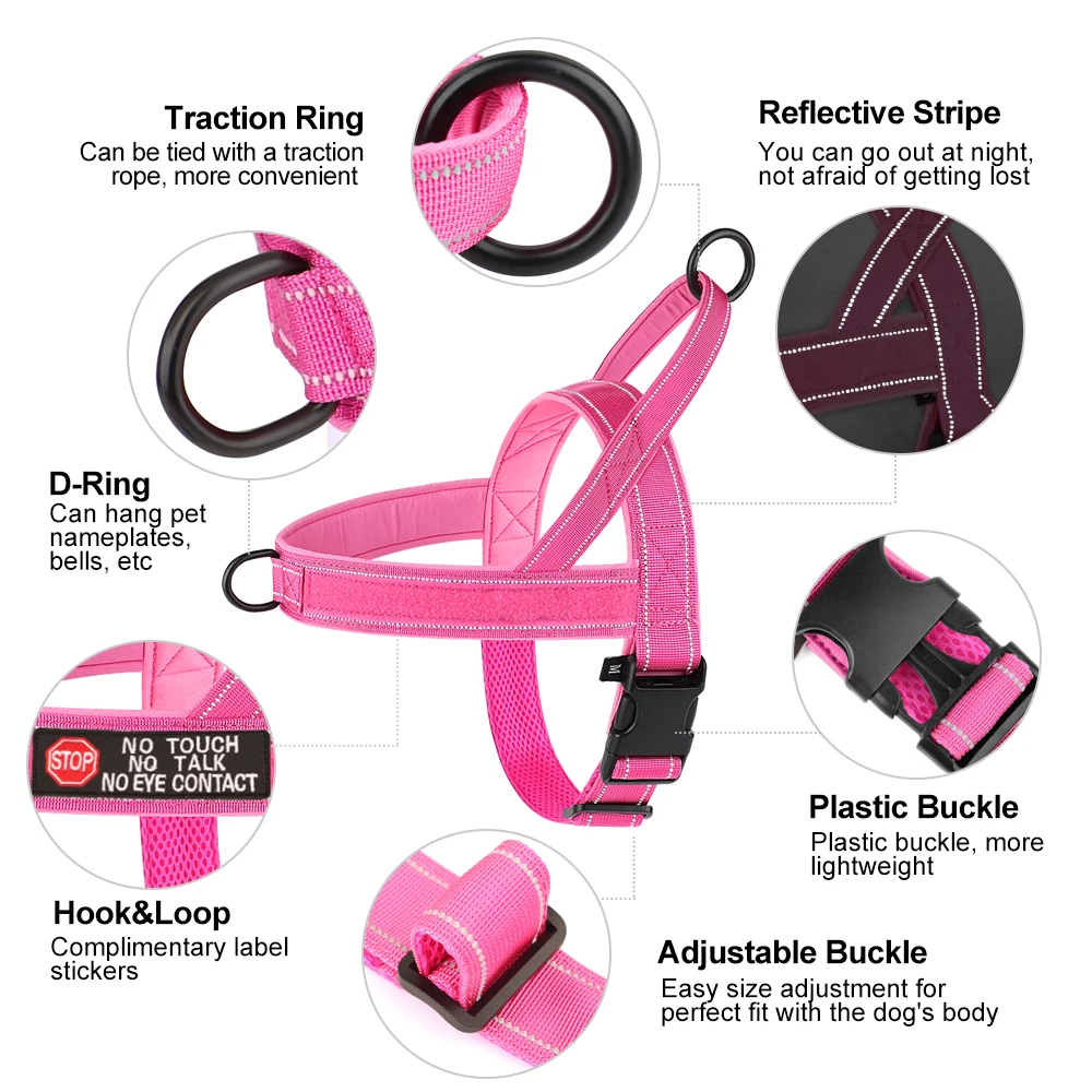 Arnés reflectante de nailon para perros, arnés ajustable para adiestramiento a caminar para mascotas, chaleco sin tirones para perros medianos y grandes Pitbull, pastor alemán