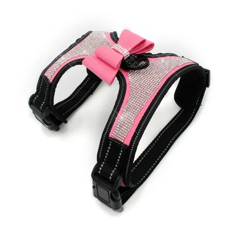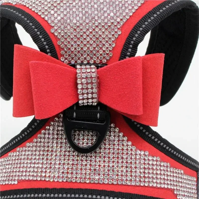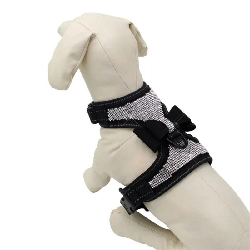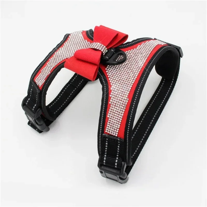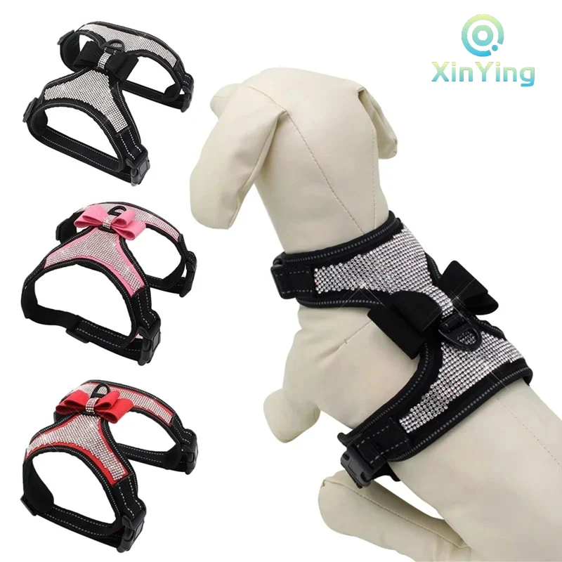 Arnés reflectante de nailon para perros pequeños y medianos, chaleco con lazo y diamantes de imitación, suministros para mascotas