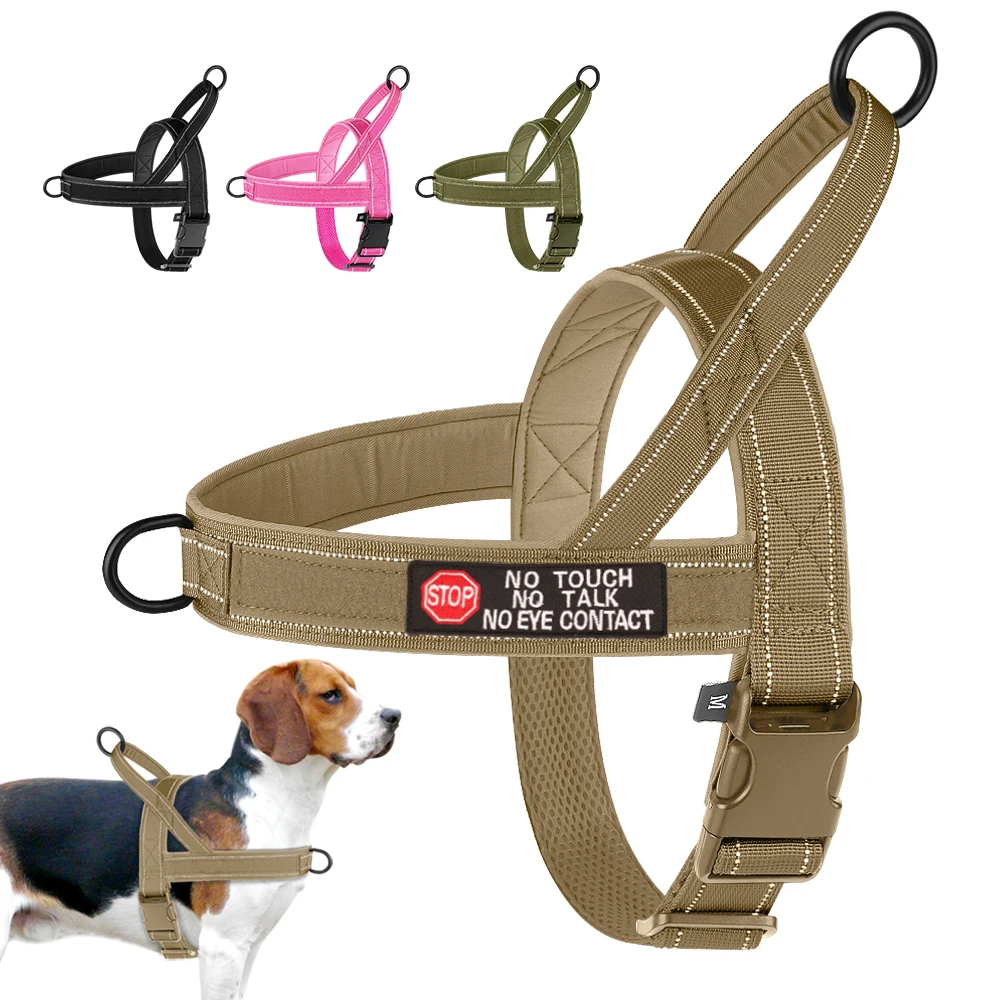 Arnés reflectante para perros sin tirones, arneses tácticos militares para cachorros Pug con pegatina, chaleco acolchado para mascotas para perros pequeños, medianos y grandes