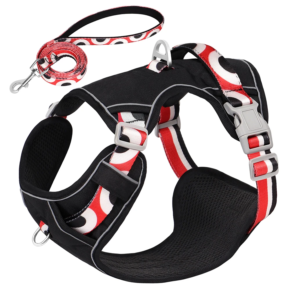 Arnés reflectante para perros, juego de correas, sin tirones, chaleco de nailon para perros, arneses con mango de Control, correa para mascotas para perros medianos y grandes, ajustable