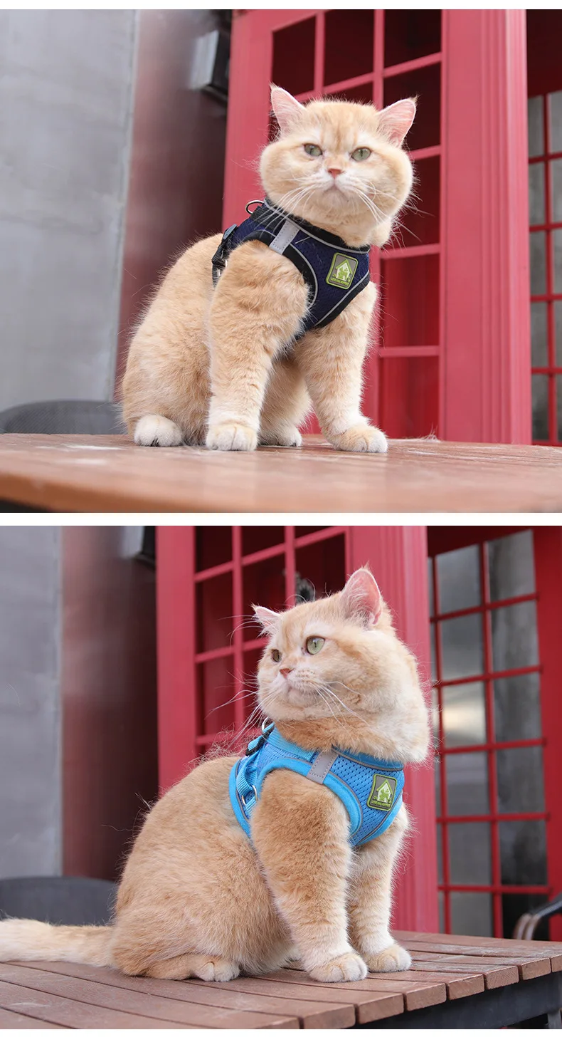 Arnés reflectante para perros y gatos con correa, chaleco ajustable de malla transpirable para mascotas, juego para caminar al aire libre sin tirar para mascotas pequeñas y medianas