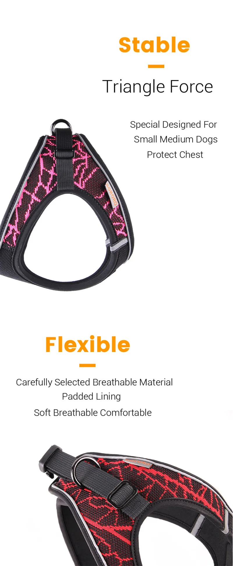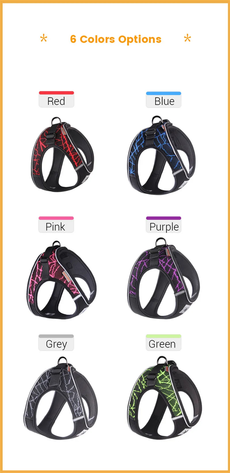 Elegimos según la tabla de tallas. El arnés es demasiado pequeño, estiró al pug como una saucer. Velcro muy débil, cuando el perro se estira, se deshace inmediatamente. De lo contrario, suave y cómodo.