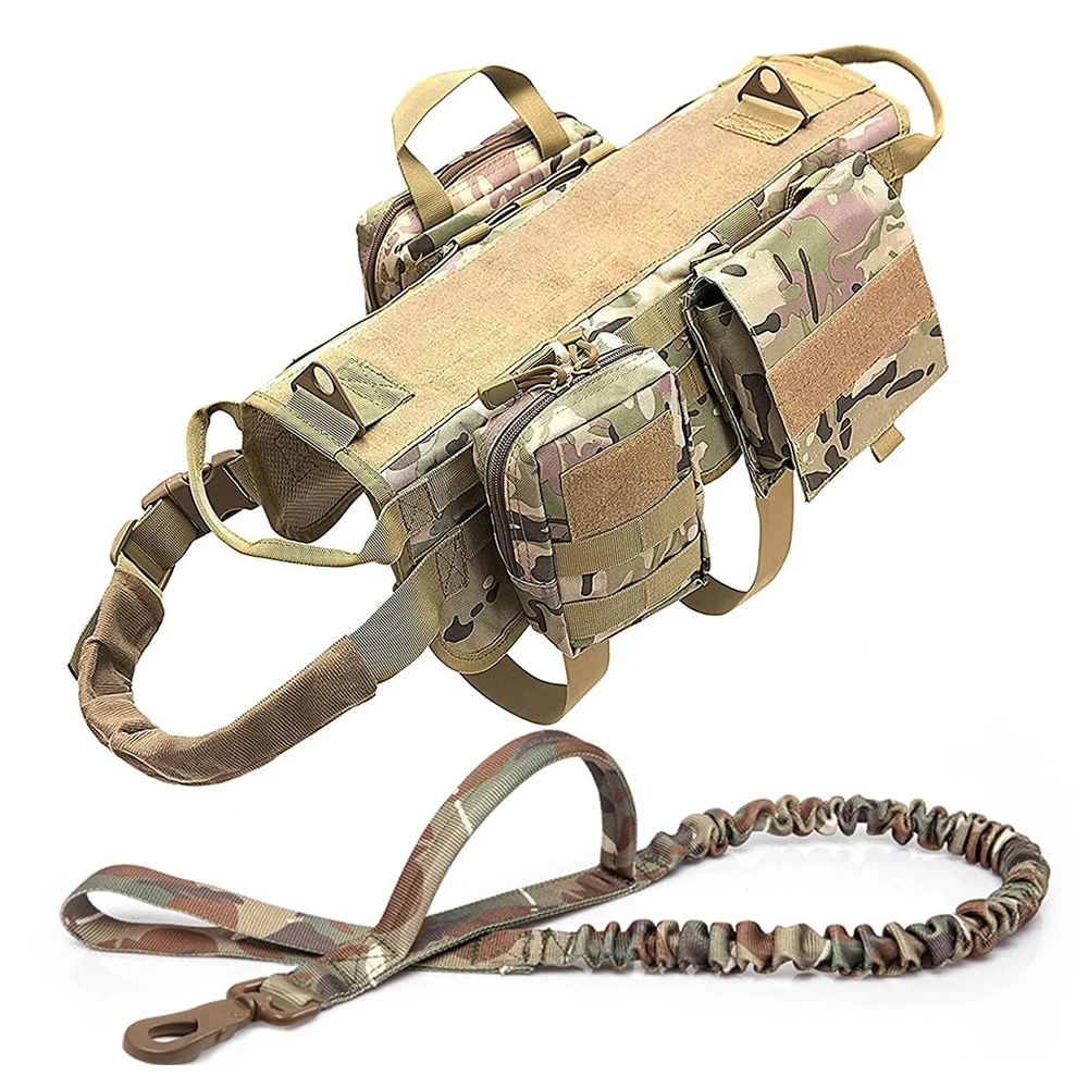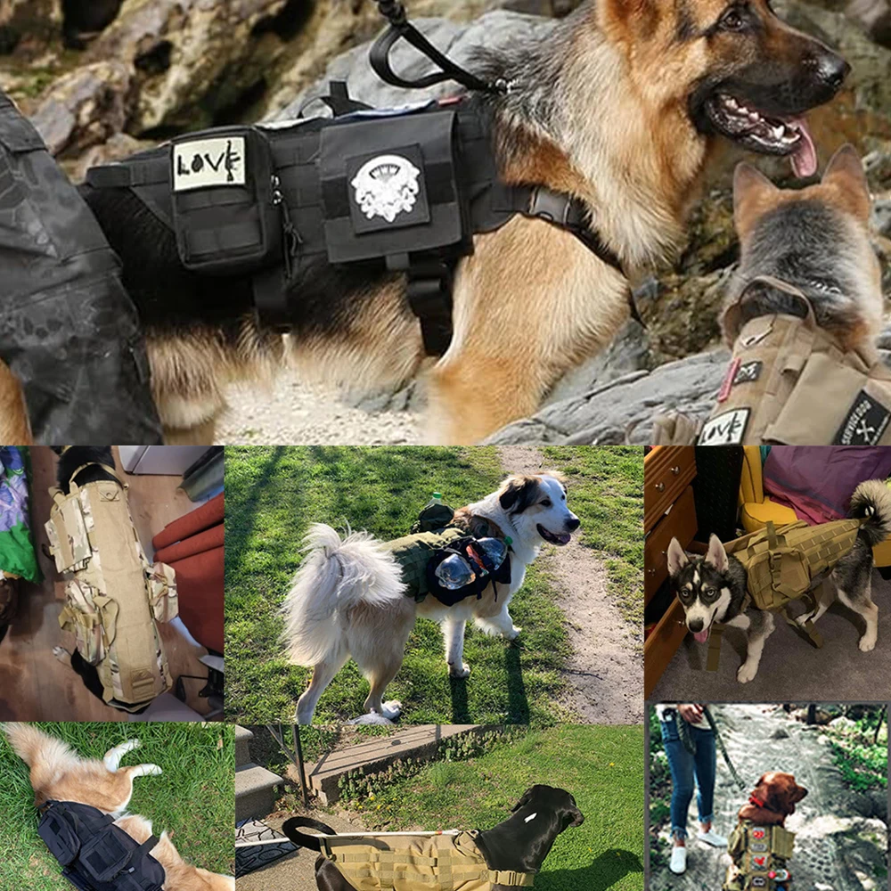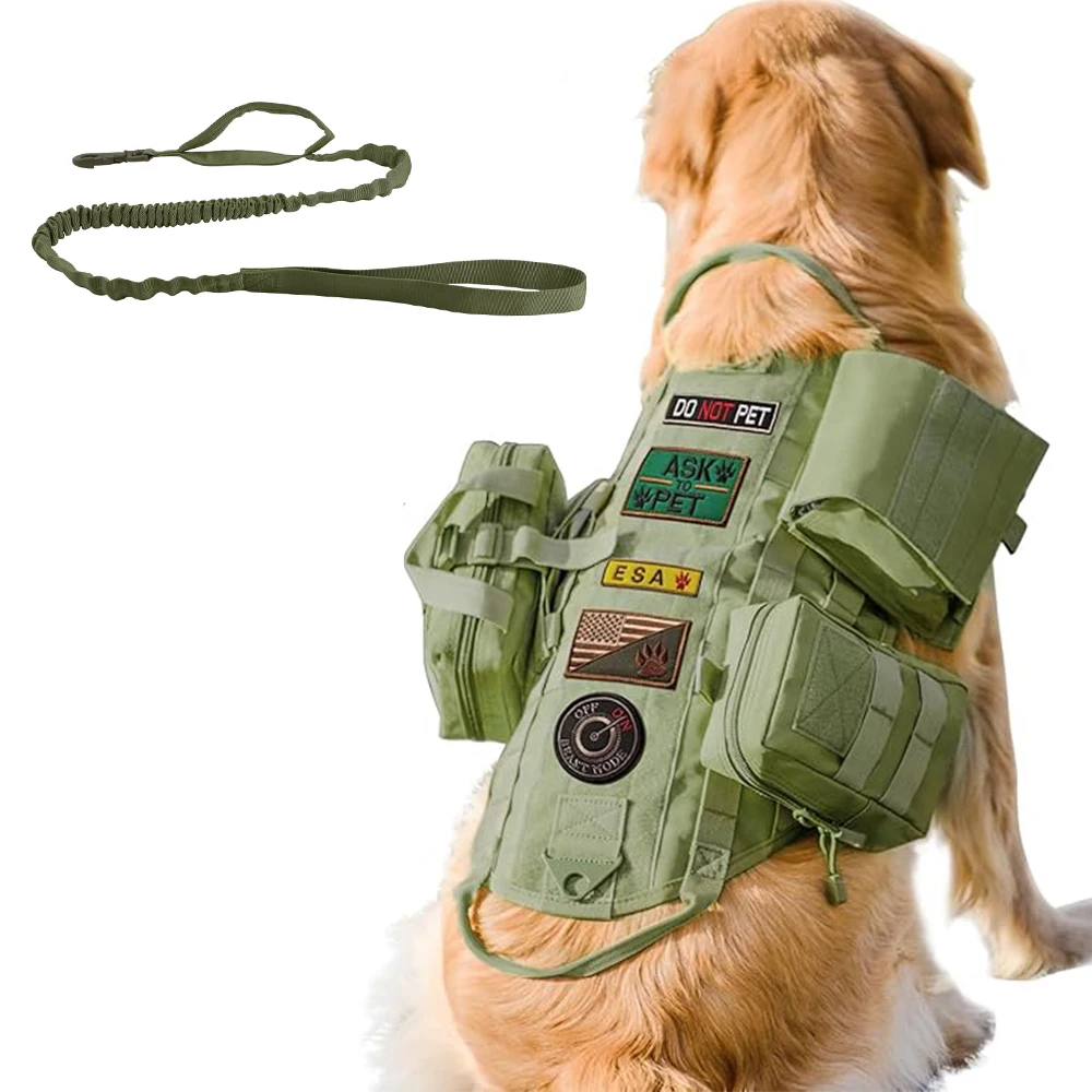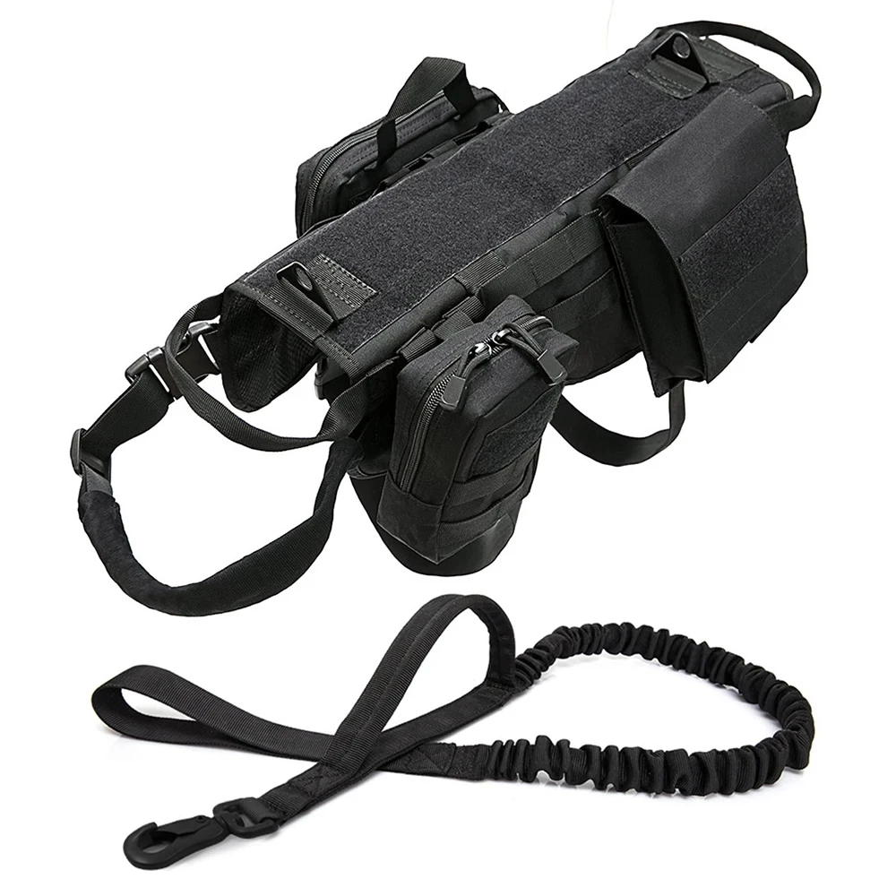 Arnés táctico estilo chaleco para perros, arnés para perros resistente con 3 bolsas MOLLE y 1 correa elástica para entrenamiento de perros medianos y grandes