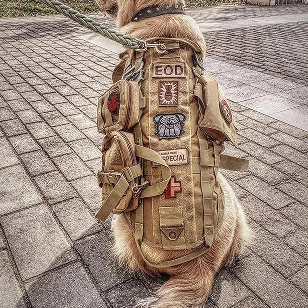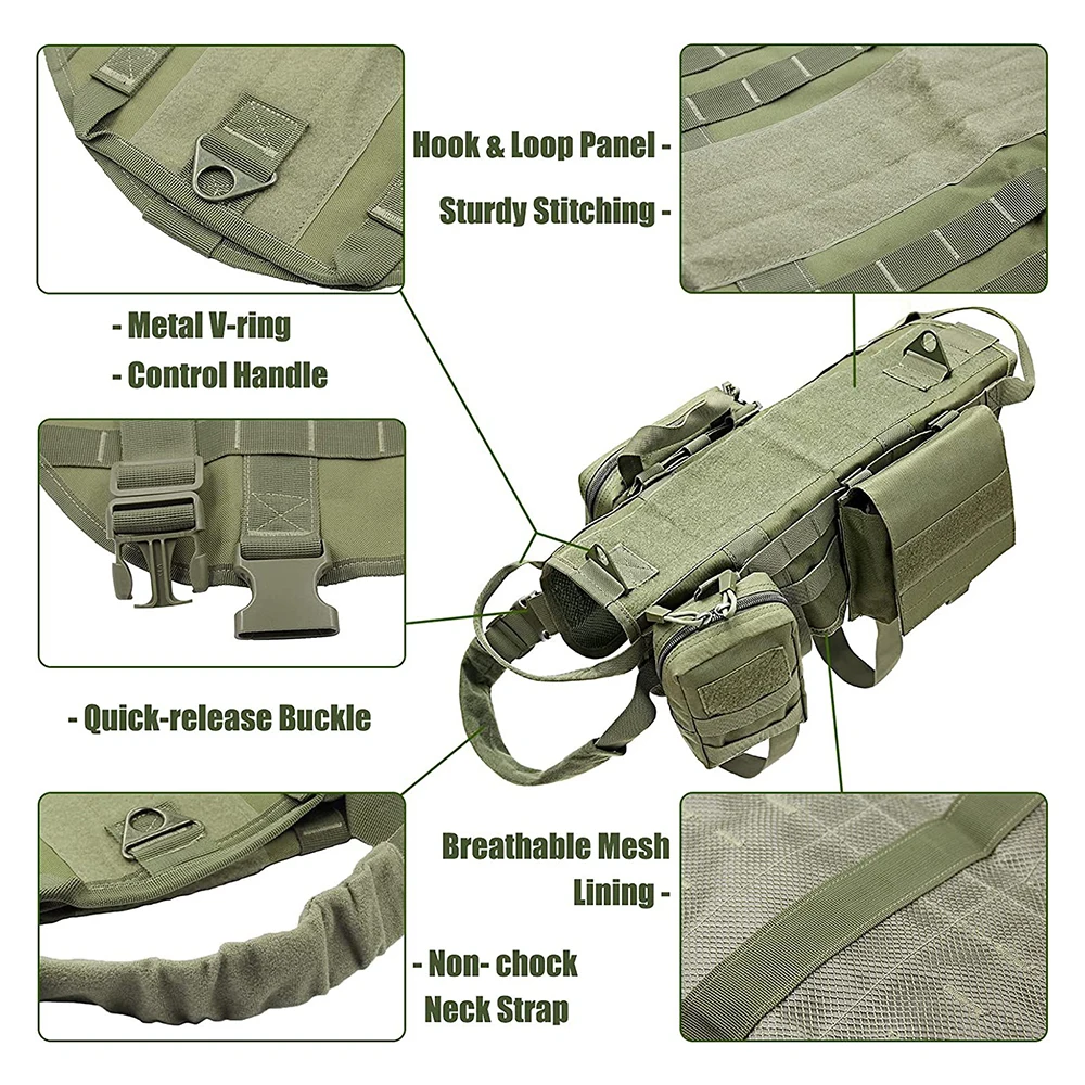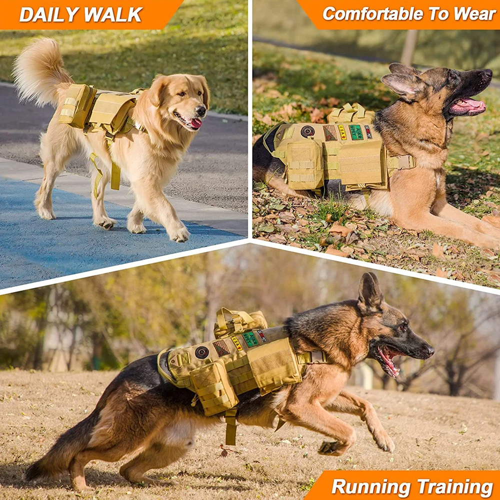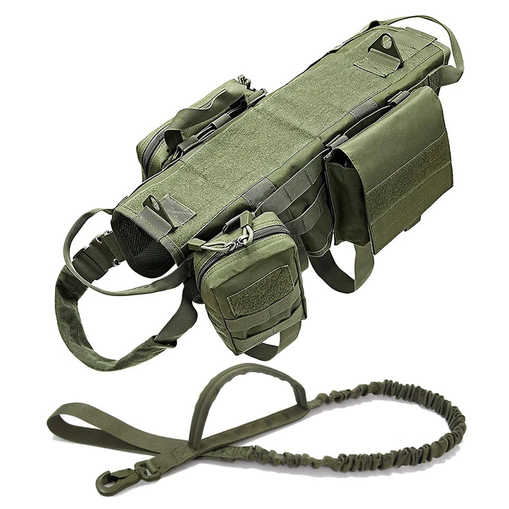 Arnés táctico estilo chaleco para perros, arnés para perros resistente con 3 bolsas MOLLE y 1 correa elástica para entrenamiento de perros medianos y grandes