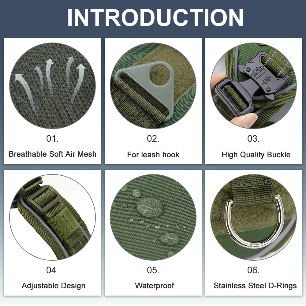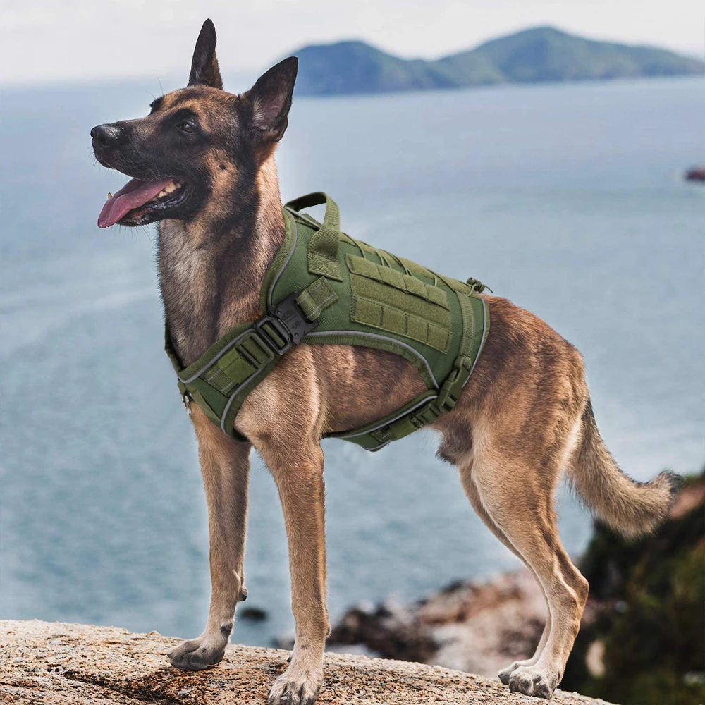 Nombre: Arnés táctico para perros de Pastor Alemán, arnés militar de nailon duradero para perros con asa para perros medianos y grandes