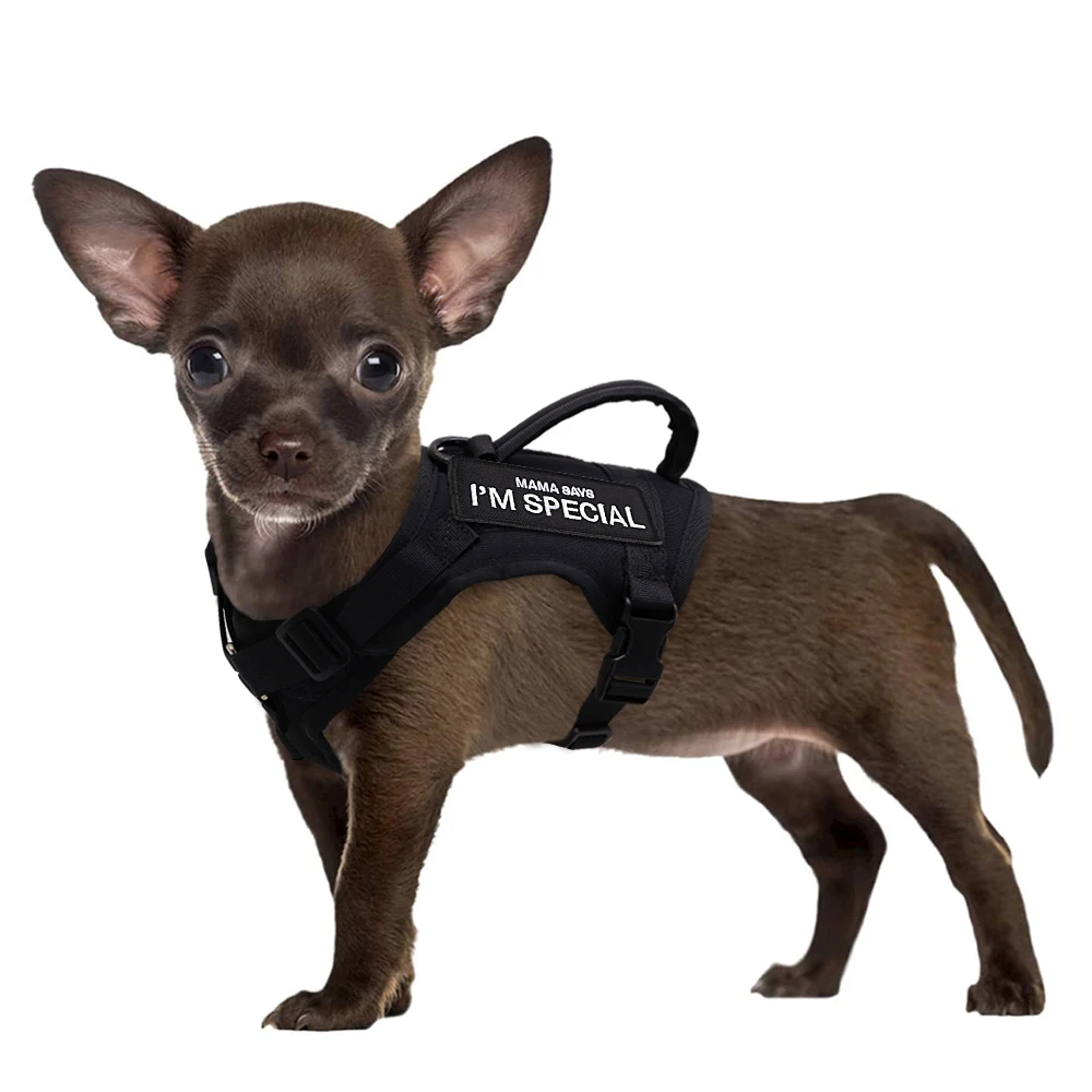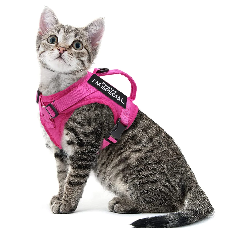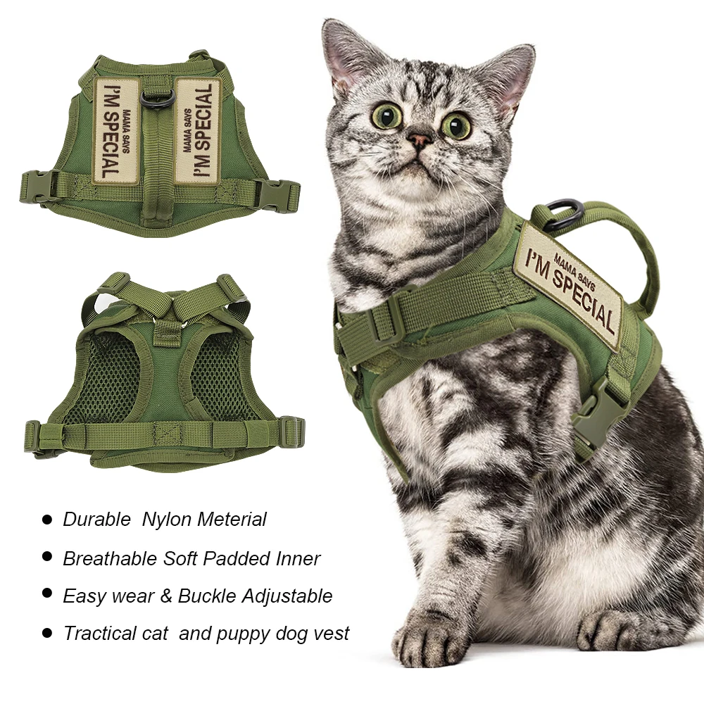 Nombre: Arnés táctico militar para perros y gatos, arnés de nailon ajustable para gatos y cachorros, chaleco con 2 parches adhesivos gratis para perros pequeños y gatos de 2 piezas