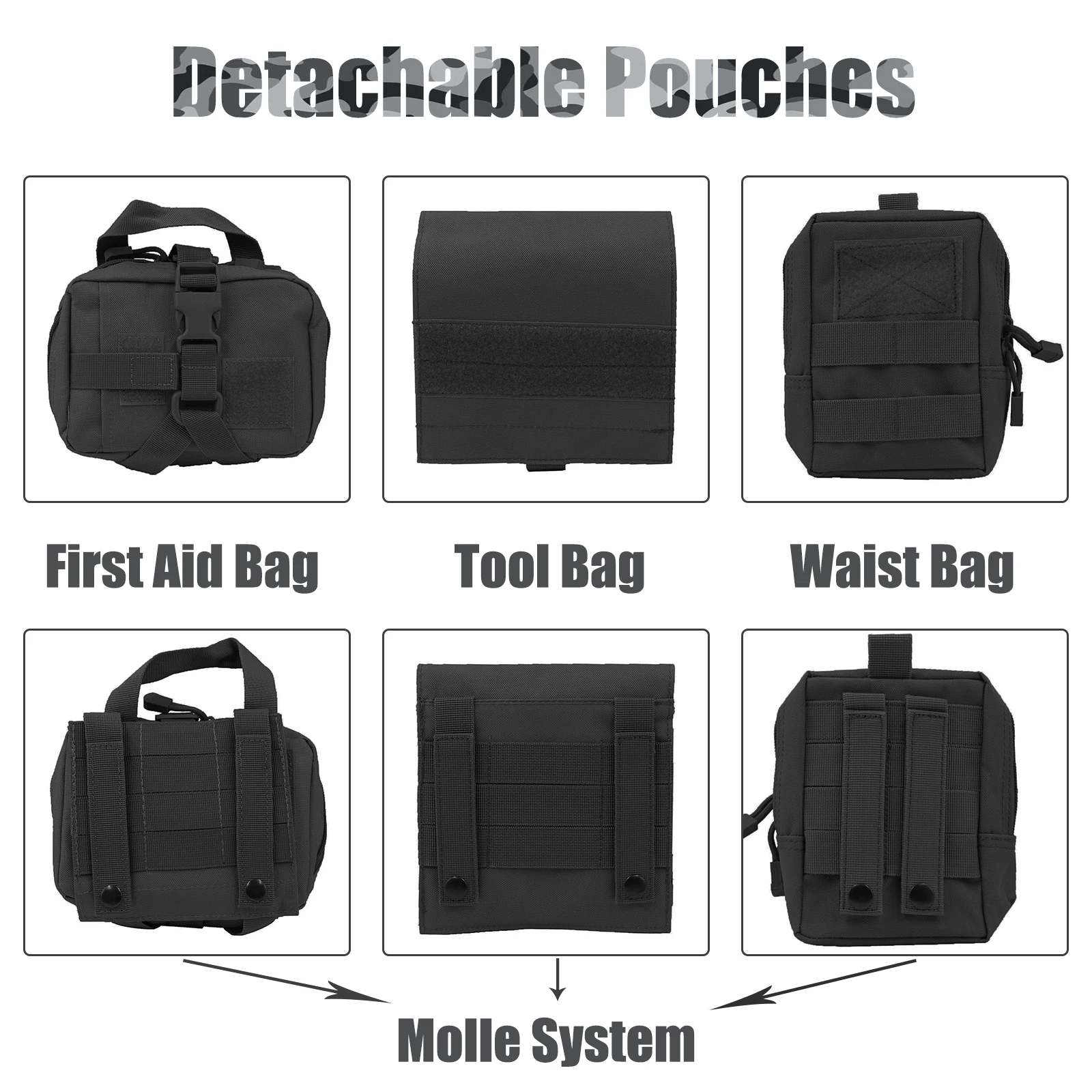[PANEL de gancho y bucle Personalizado]Hay paneles de gancho y bucle en la parte superior del chaleco, puede agregar algunas insignias personalizadas.