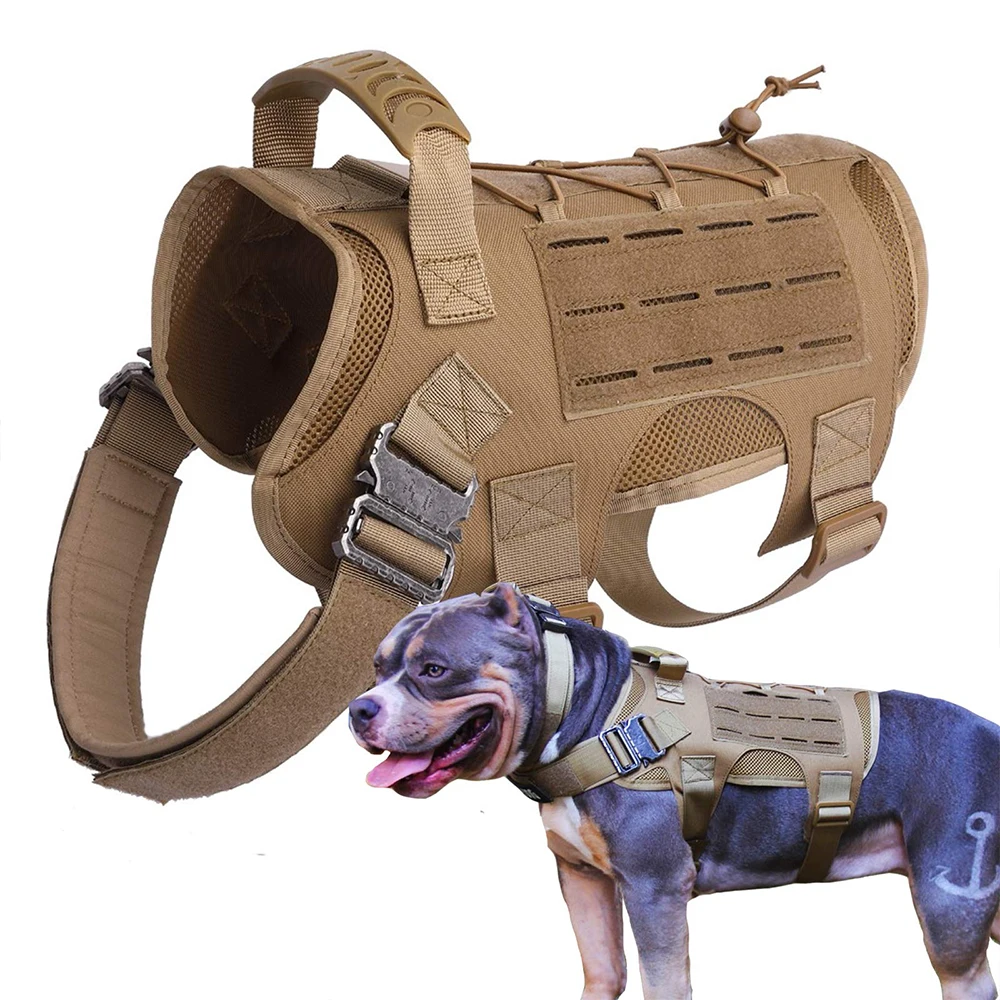 Arnés táctico para perros de alta resistencia con mango engrosado y hebillas de metal de liberación rápida, malla transpirable para perros medianos y grandes