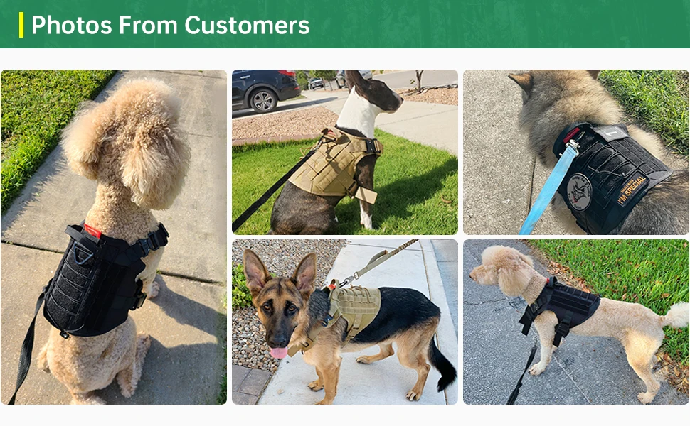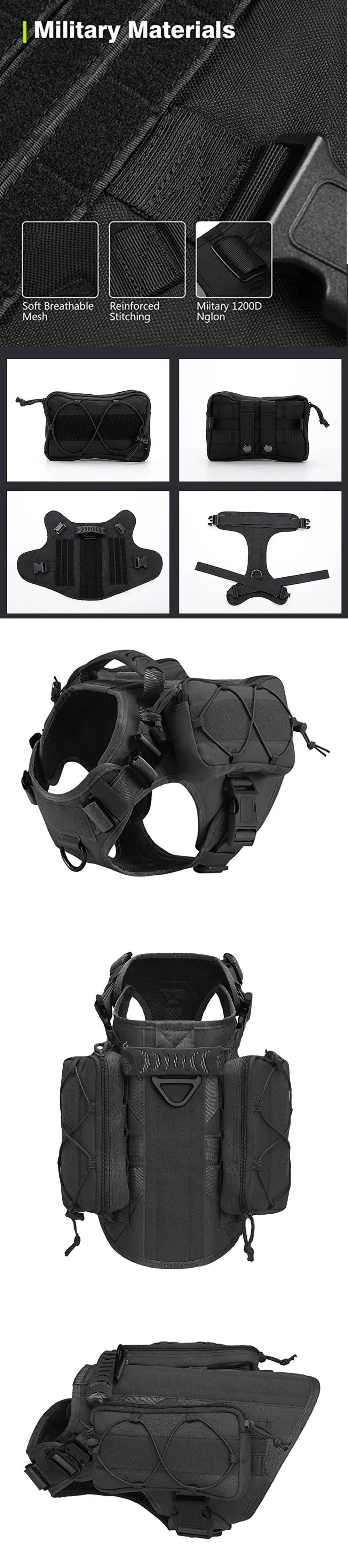 [SISTEMA MOLLE Y 2 BOLSAS LATERALES] ¡Libera tus manos! Deja que los perros lleven sus propias cosas. Dos filas de molle cosidas en ambos lados del arnés, le permiten sujetar la bolsa Molle/ PAL o enganchar el cuenco para perros, la botella de agua o los juguetes al salir. Las dos bolsas laterales tienen una gran capacidad, suficiente para las necesidades.