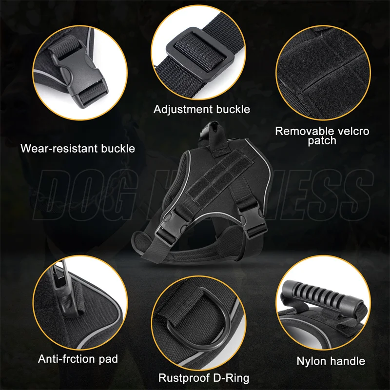 Chaleco táctico para perros, arnés de entrenamiento para perros grandes, transpirable, sin tirones, con asa, fácil de poner