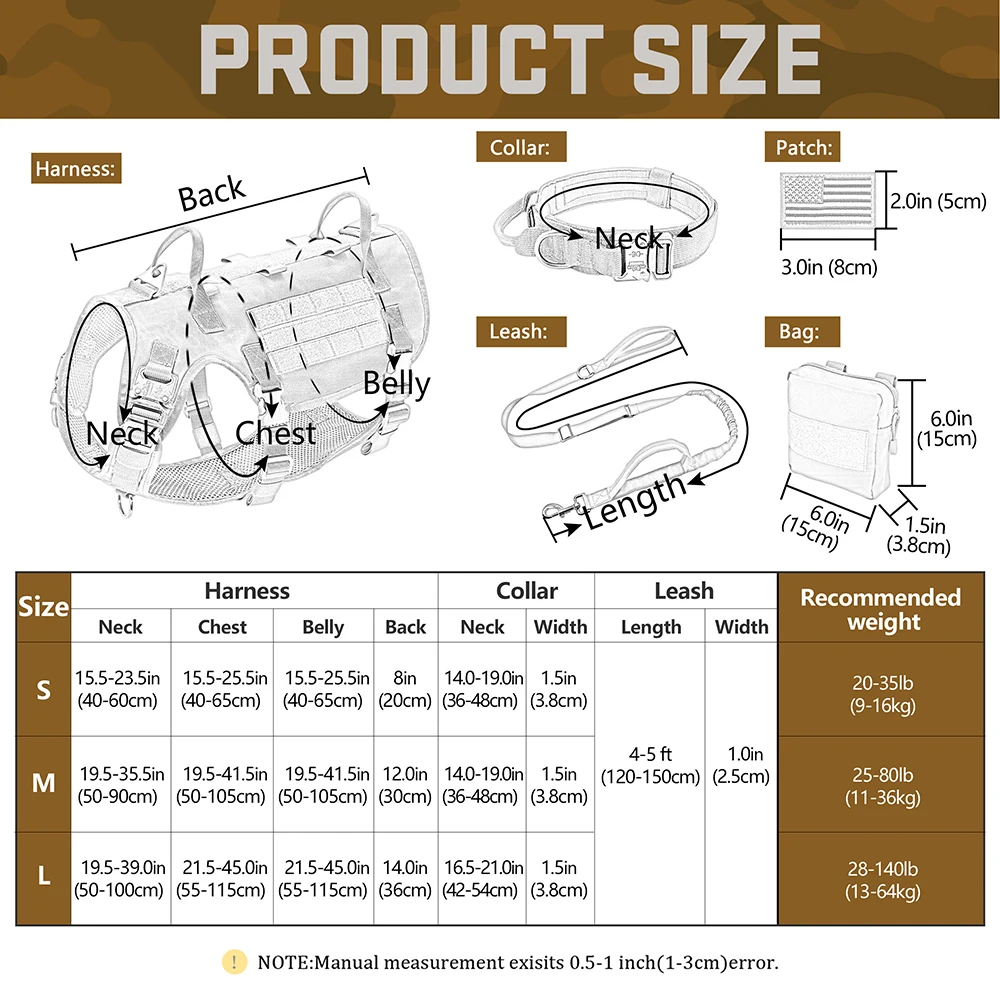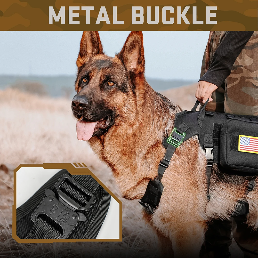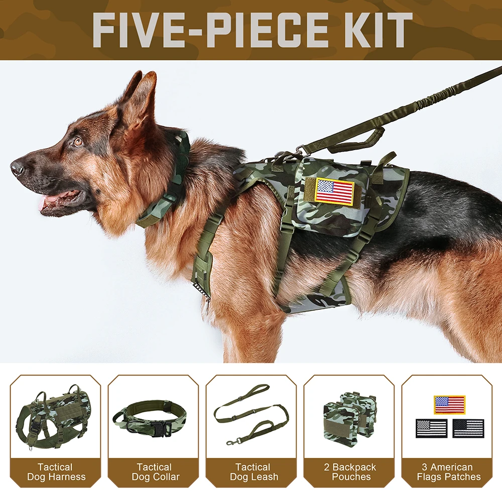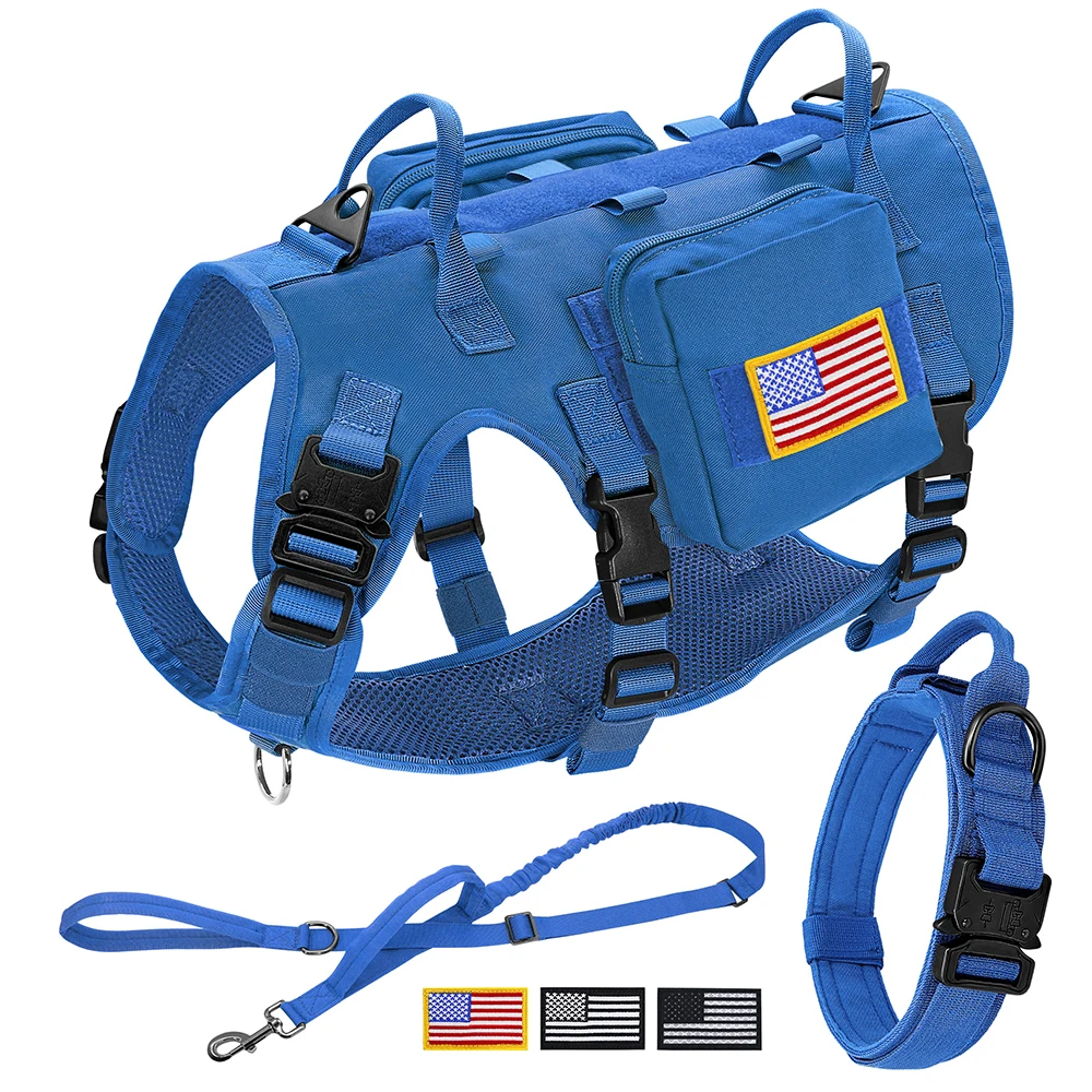 Conjunto de correa y arnés táctico para perros, chaleco para mascotas de entrenamiento militar con bolsas, banderas, collares duraderos para perros grandes, pastor alemán