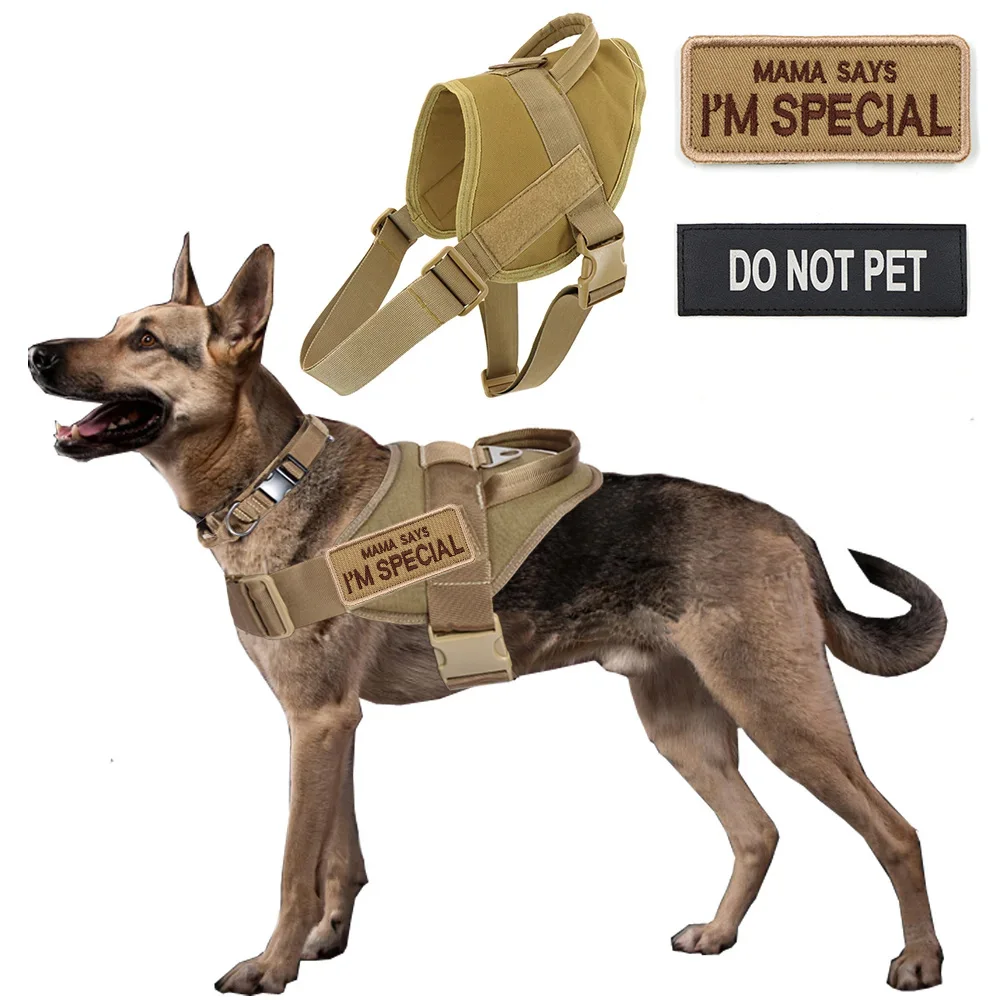 Arnés táctico para perros con correas de velcro, chaleco militar ajustable para pastor alemán Malinois para caminar, cazar y entrenar