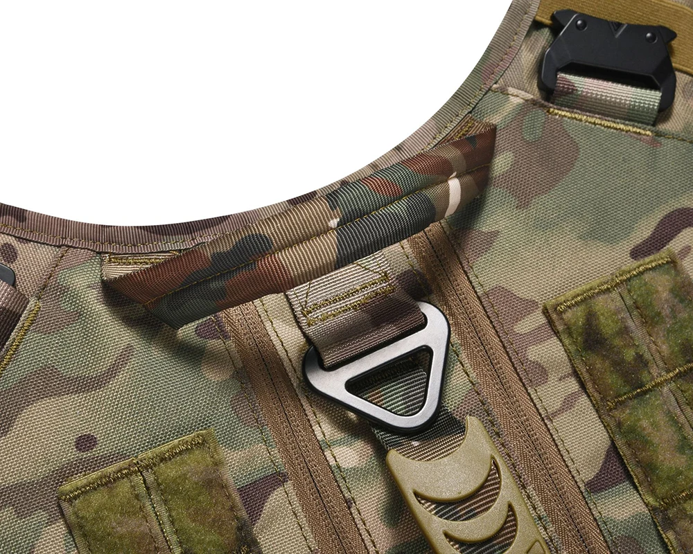Fabricado con nailon 1000D resistente, este arnés está diseñado para durar.Las hebillas de metal en la parte superior e inferior pueden soportar hasta 1000 libras de fuerza.Las fuertes costuras en cada articulación garantizan que resistirá un uso intensivo.
