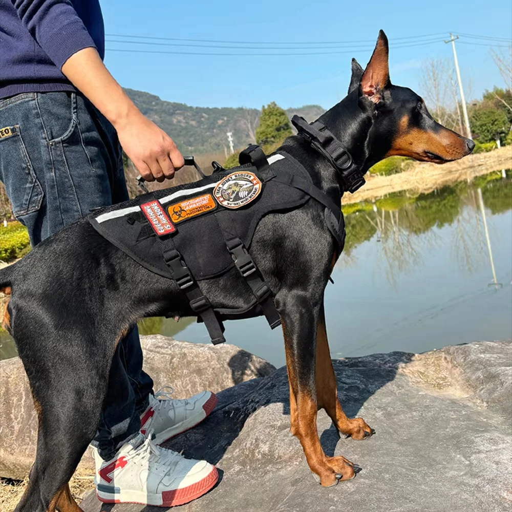Arnés táctico para perros para perros grandes/medianos, chaleco para perros de servicio militar reflectante, ligero y ajustable para entrenamiento y aventura