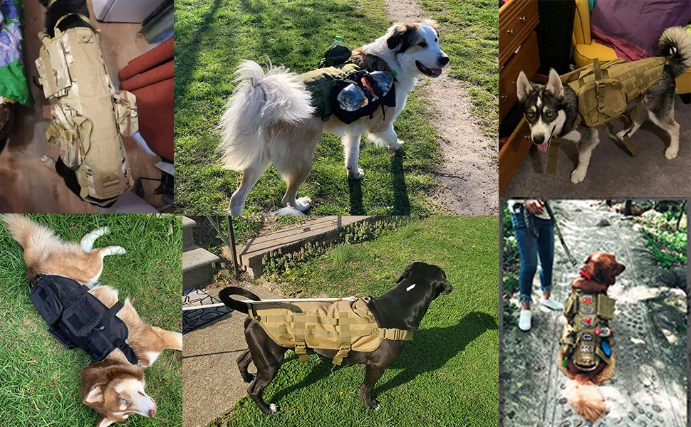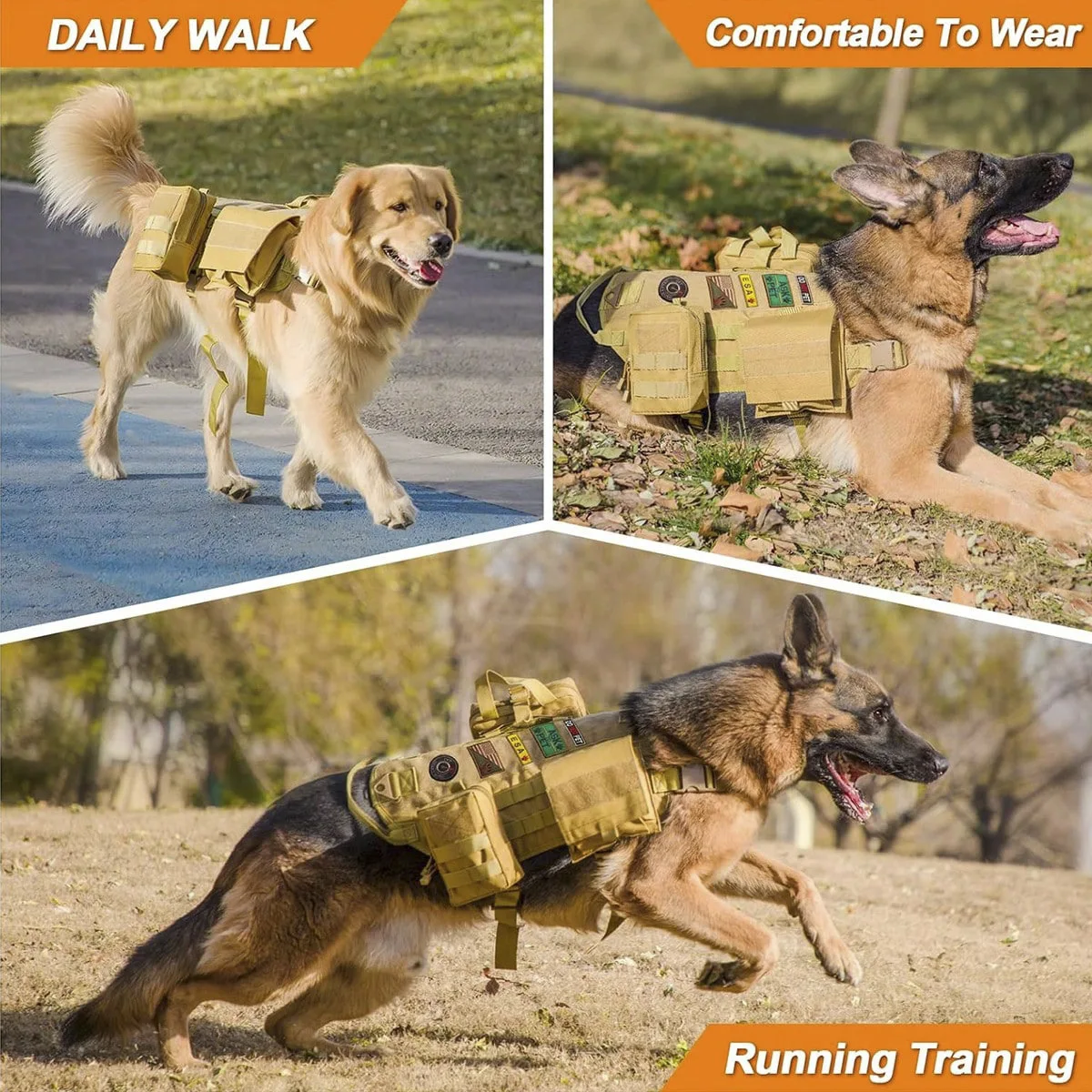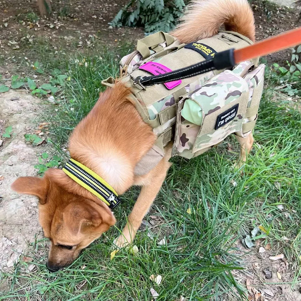 Arnés táctico para perros con múltiples bolsillos y correa elástica, chaleco duradero de estilo militar para mascotas para entrenamiento y actividades al aire libre