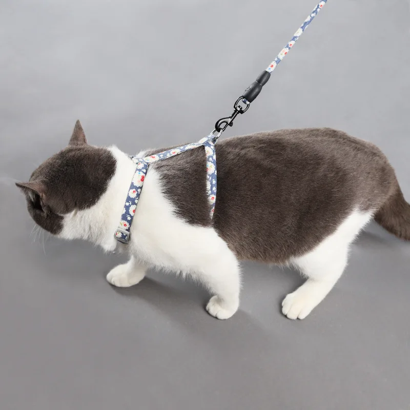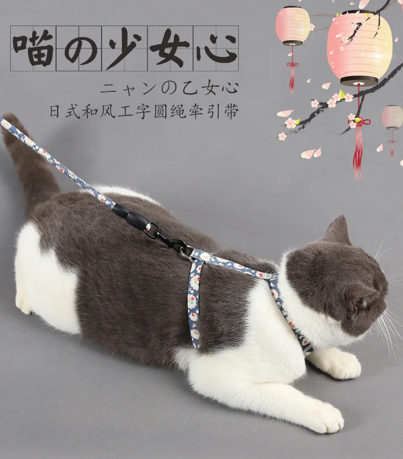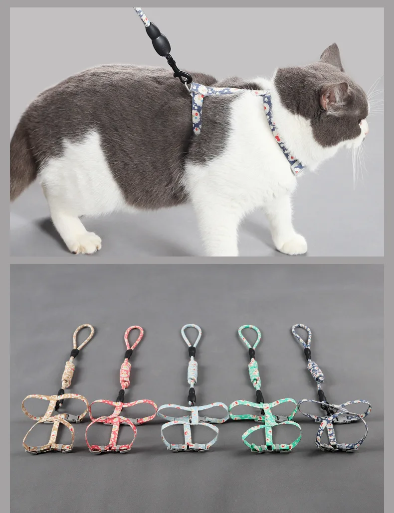 Arnés de tracción de nailon ajustable para perro y gato, conjunto de correa para gato, gatito, cachorro, Collar con campana, Halter, suministros para mascotas