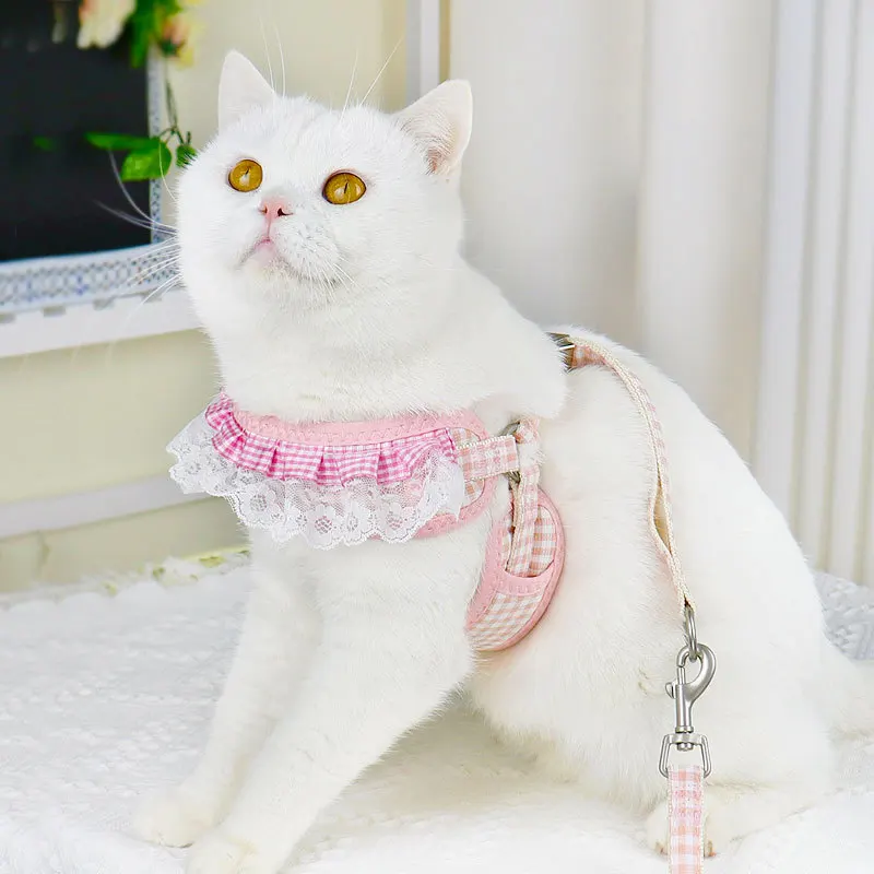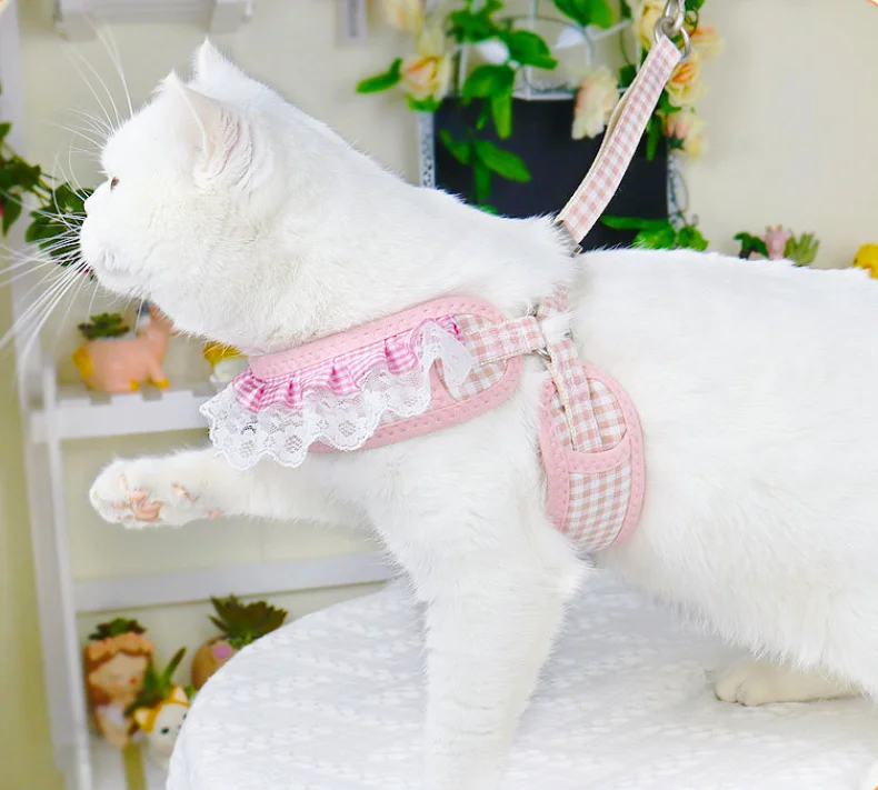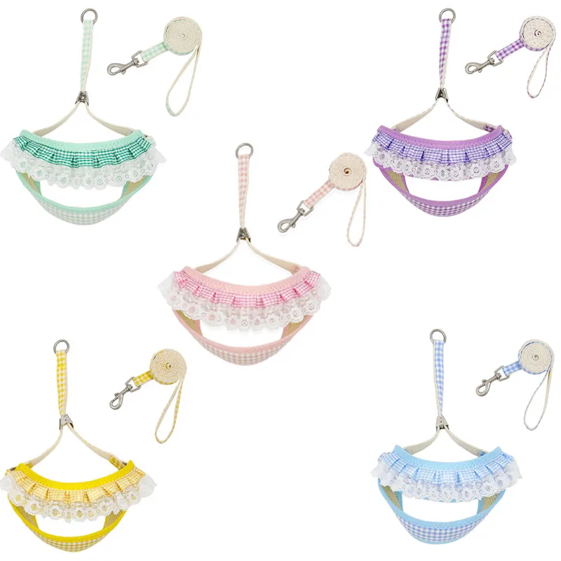Artículo: Conjunto de arnés transpirable para perros con correa, chaleco con cuello de encaje para perros pequeños, Chiwawa, caniche a cuadros, cachorro, gato, correa para el pecho, suministros para mascotas XL