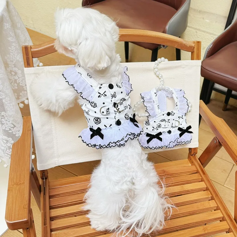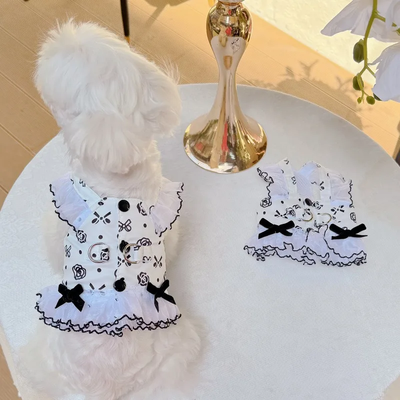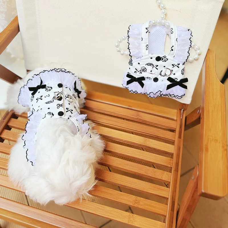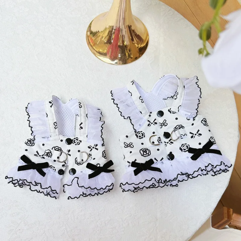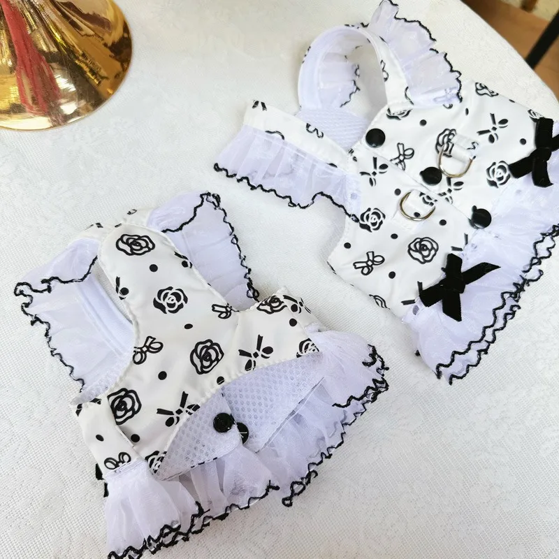 Arnés de verano para perros, arnés de flores blanco y negro, vestido para mascotas, gato, chaleco blanco para cachorros, arnés, Kit de plomo, Chihuahua, Yorkshire Terrier