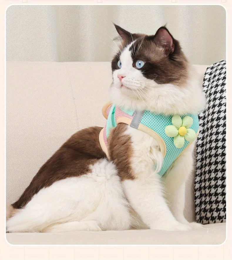 Arnés y correa para perros y gatos, correas de pecho para mascotas de malla transpirable para gatos, cachorros que caminan plomo, Ragdoll, chaleco de Chihuahua, arnés Bulldog, accesorios para perros y gatos