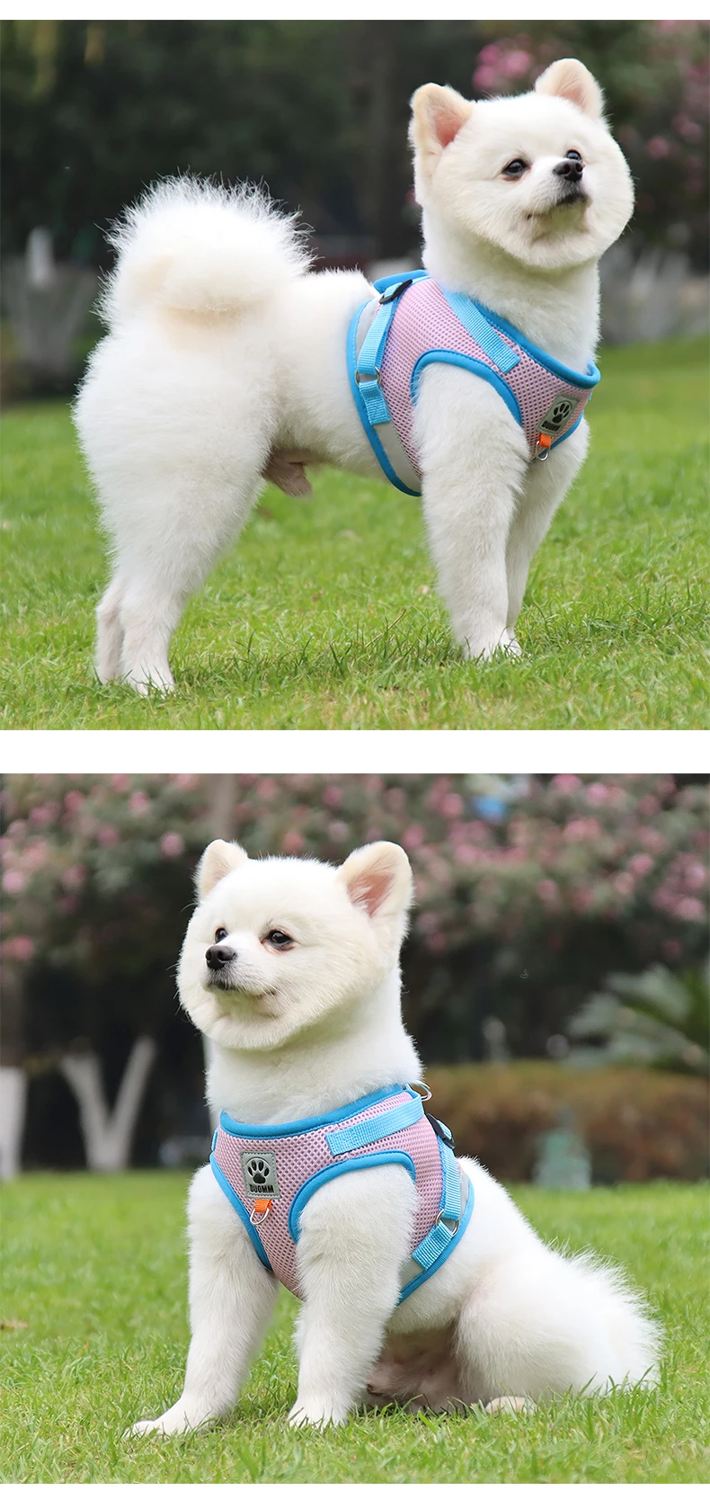 Conjunto de arnés y correa reflectante de seguridad para perros pequeños y medianos, arnés para gatos, chaleco, correa para el pecho para cachorros, Pug Chihuahua Bulldog