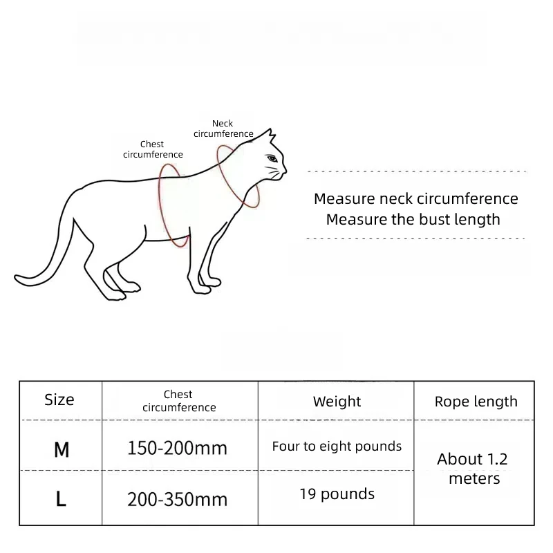 L: circunferencia del pecho: 20*35cm (7,9*13,8 pulgadas) --- apto para gatos de menos de 7kg