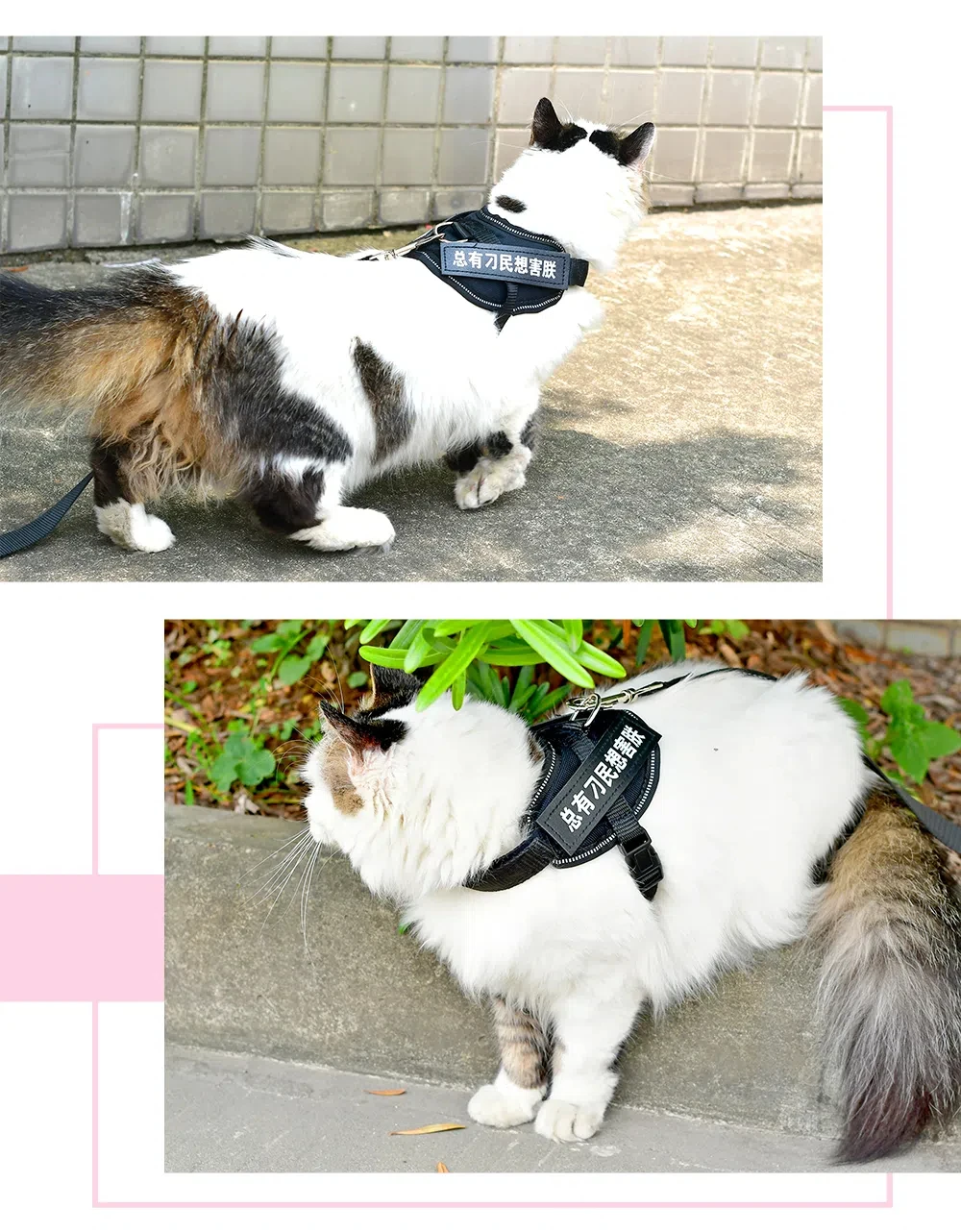 2. Su diseño ligero hace que el gato sea más flexible en actividades al aire libre, y está equipado con una correa de pecho ajustable para diferentes tipos de gatos.
