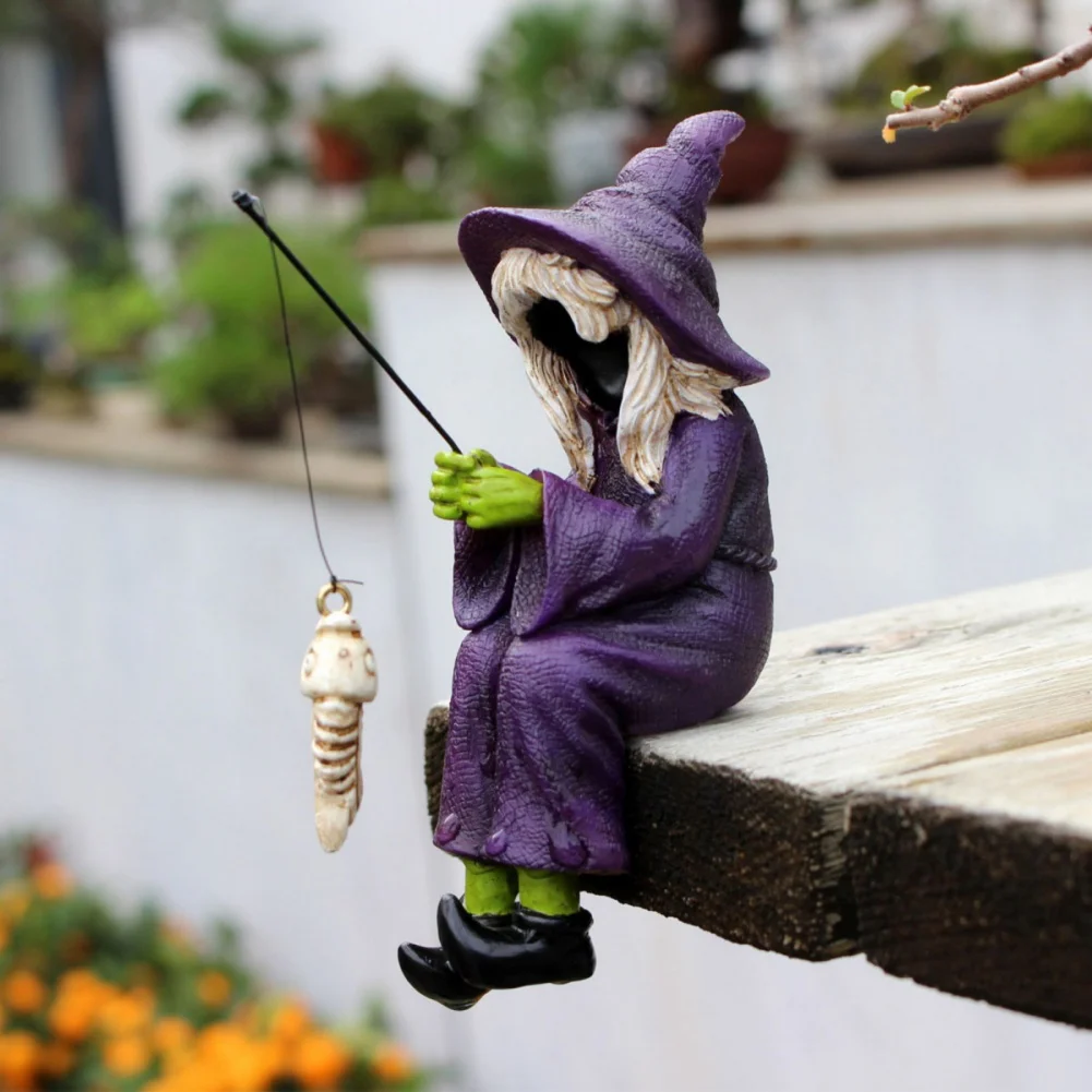【Material de resina】Hecho a mano de resina impermeable, el adorno de resina de bruja de pesca está construido para soportar los elementos, lo que lo hace perfecto para uso en interiores y exteriores. Su construcción robusta garantiza que será un favorito de Halloween en los años venideros.