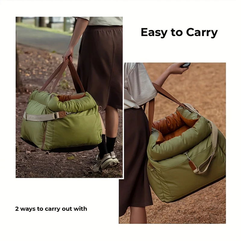 Cómodo y fácil de transportar: el asa ancha, reforzada con cuero, está hecha para un transporte sin esfuerzo, minimizando la carga de transporte.Además, los compartimentos laterales son ideales para guardar artículos importantes como juguetes y snacks.Adecuado para perros de tamaño pequeño a mediano.