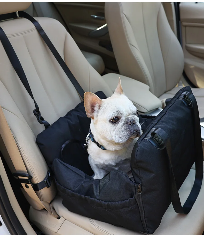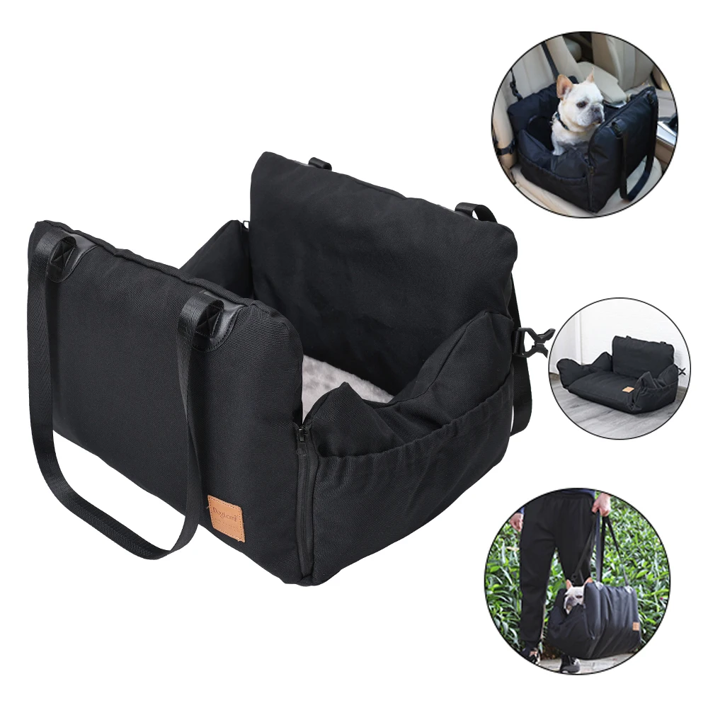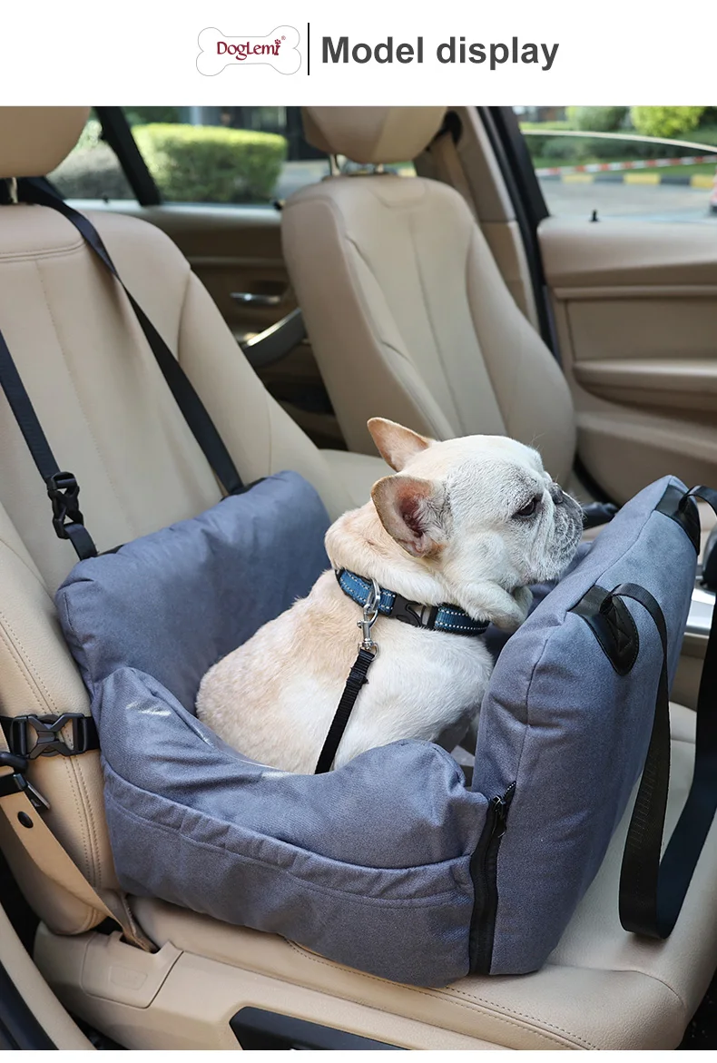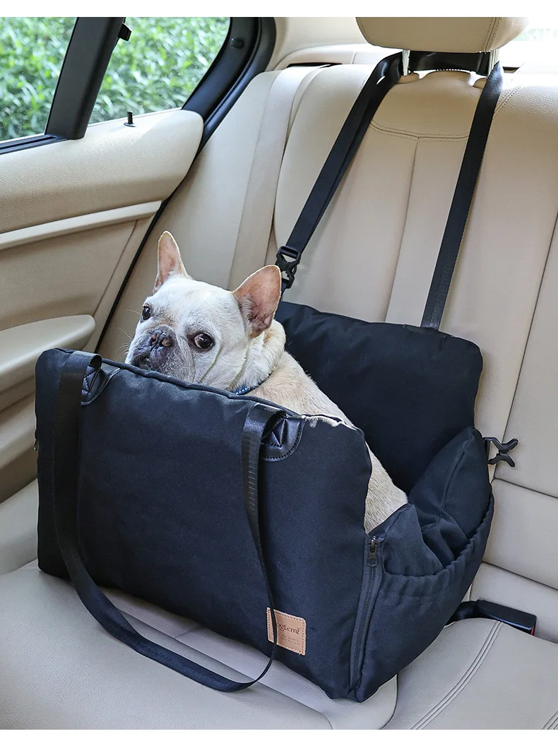 Asiento de coche para perros pequeños, cama inflable lavable con correa de seguridad, bolsa de viaje portátil para mascotas, cama suave impermeable