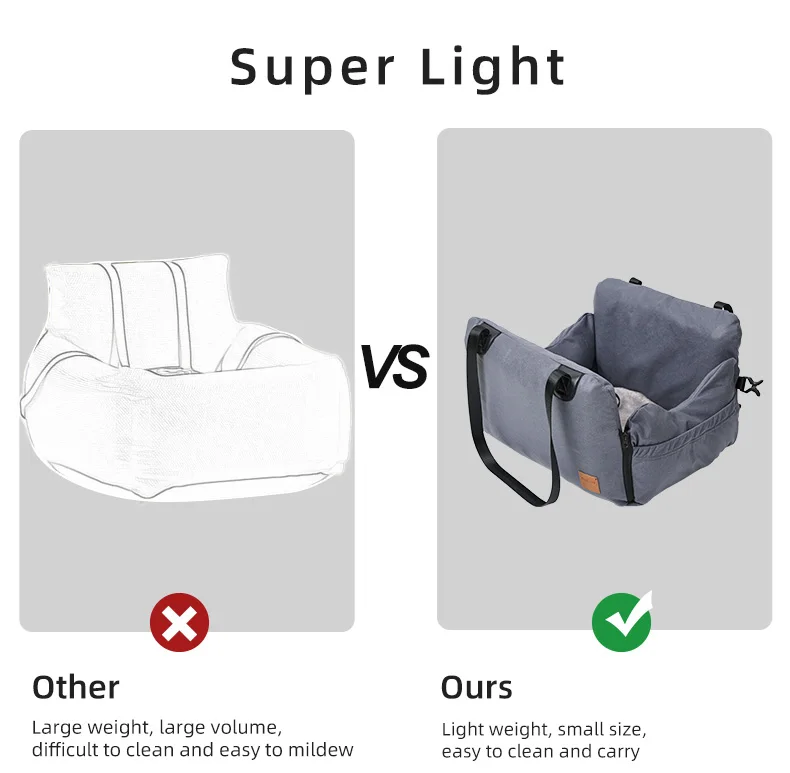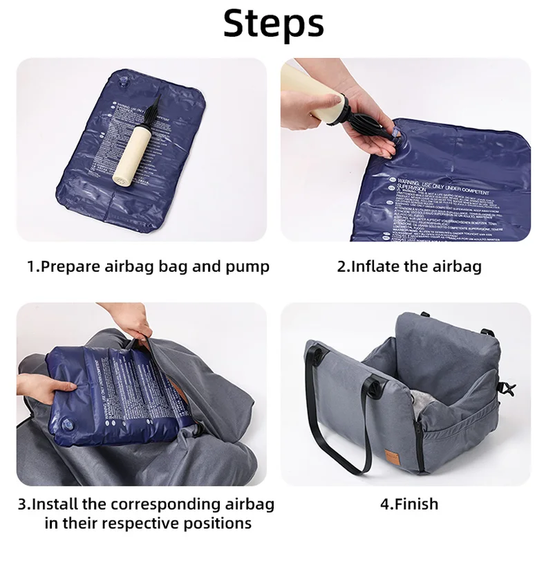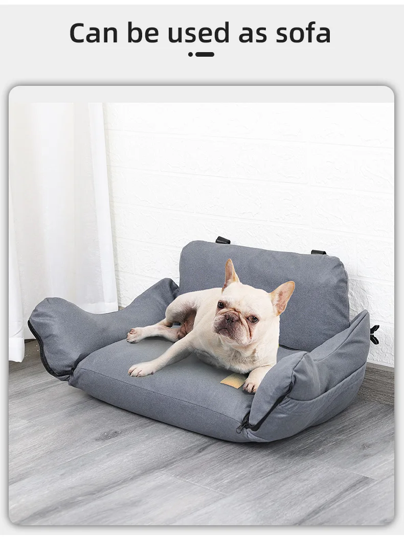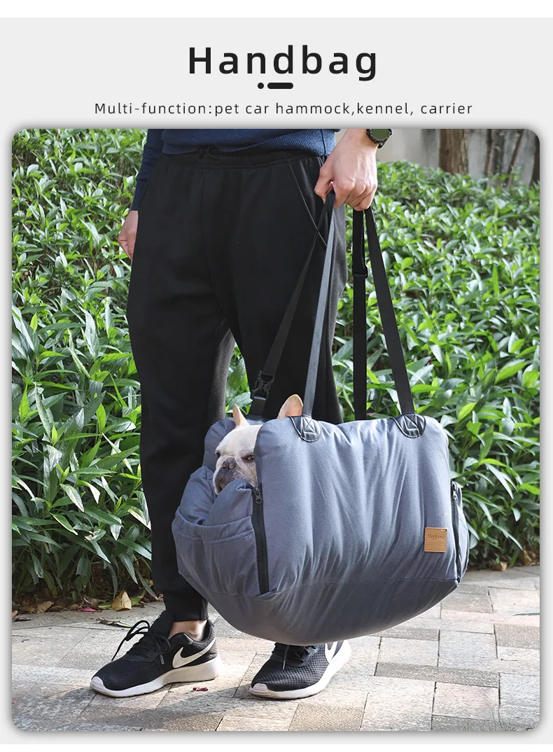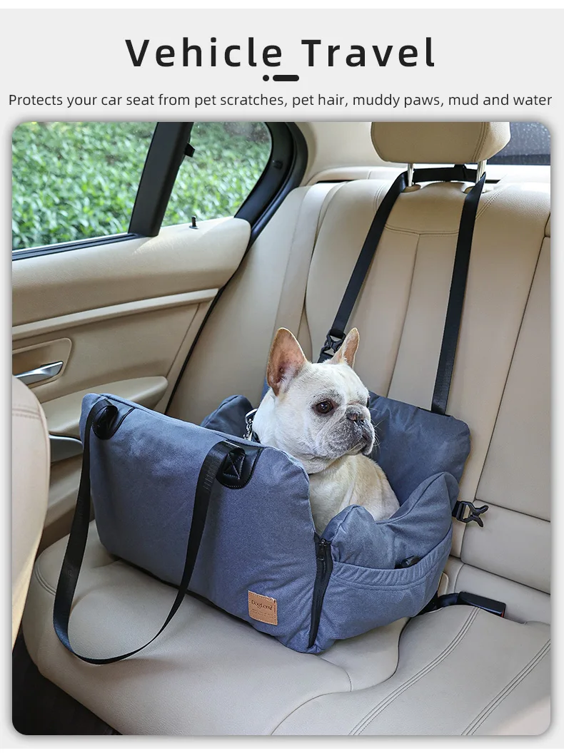 Asiento de coche para perros pequeños, cama inflable lavable con correa de seguridad, bolsa de viaje portátil para mascotas, cama suave impermeable