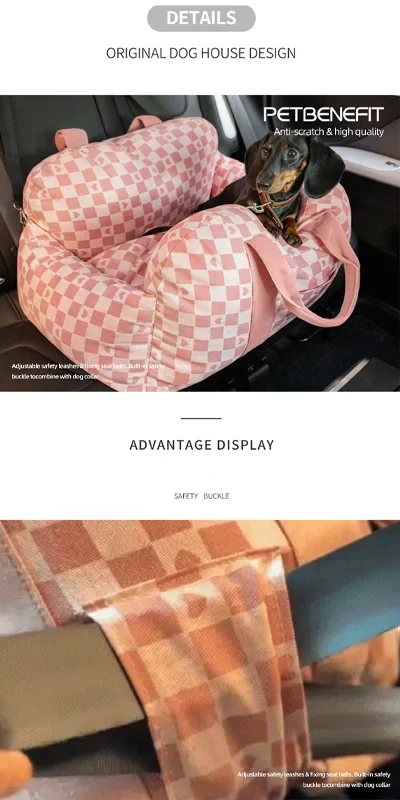 Asiento de coche portátil para perros, Control Central, portabebés antideslizantes, caja segura para reposabrazos de coche, perrera, cama para perros pequeños y gatos, viaje