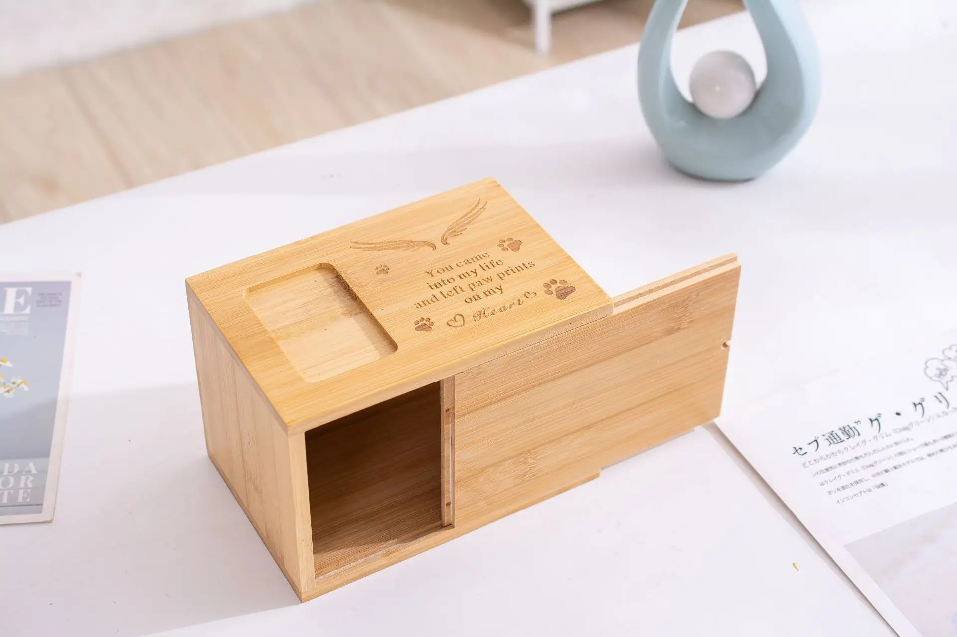 Ataúd cinerario de urna de madera con marco de fotos, ataúd de gato y perro, suministros funerarios, caja conmemorativa de pino, cenizas de mascotas