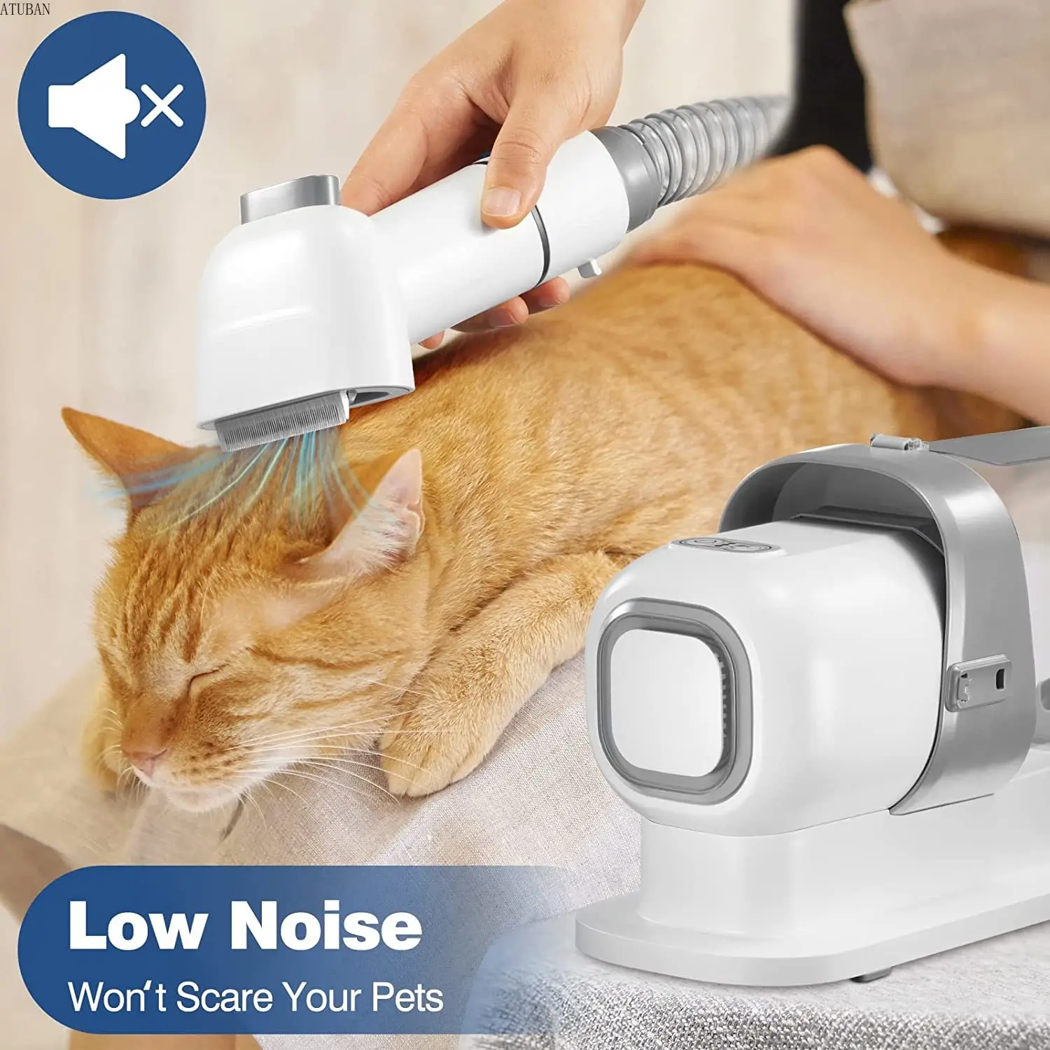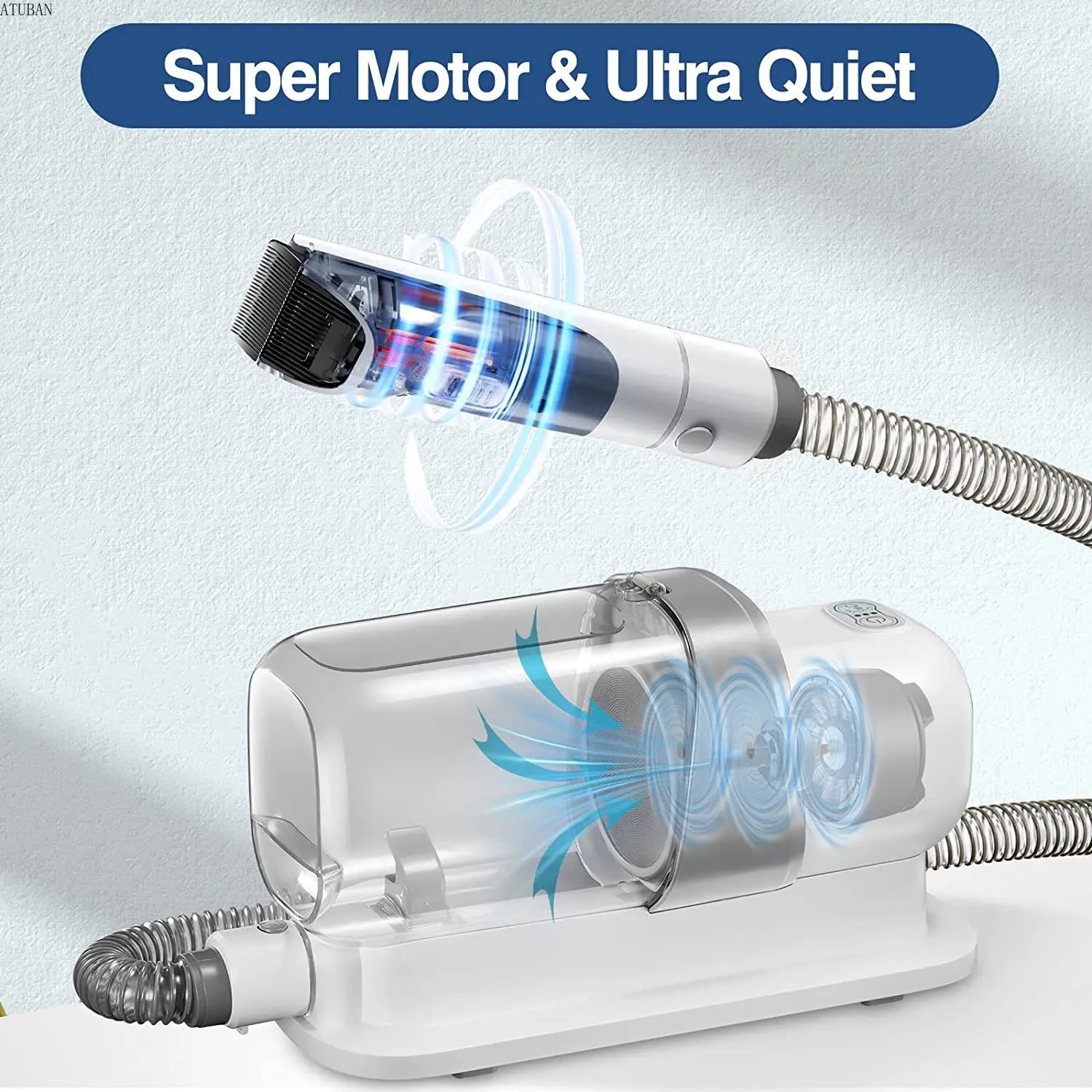 Bajo nivel de ruido: la aspiradora de pelo de mascotas ATUBAN utiliza un motor de súper alta calidad, por lo que el sonido es muy bajo, que es inferior a 60dB en uso normal, por lo que este aspirador de aseo no asustará a su mascota y también ayudará a que la mascota se sienta a gusto y ya no le teme a los cortes de pelo.