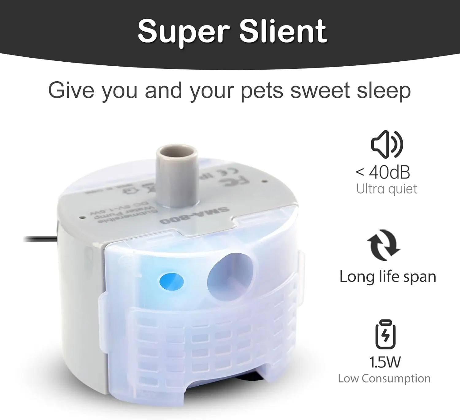 😻【Ultra silencioso】Versión mejorada de la bomba de fuente de agua para gatos ultrasilencioso, el funcionamiento normal no producirá ruido mecánico.