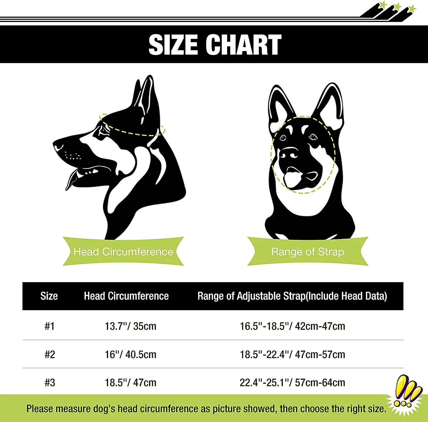 Tamaño M de la cabeza a la barbilla tamaño ajustable 18,5 "-22,4", se ajusta a los perros alrededor de 27lb-44lb, el ajuste dependerá del tamaño y la circunferencia de la cabeza de su perro, no de la raza.