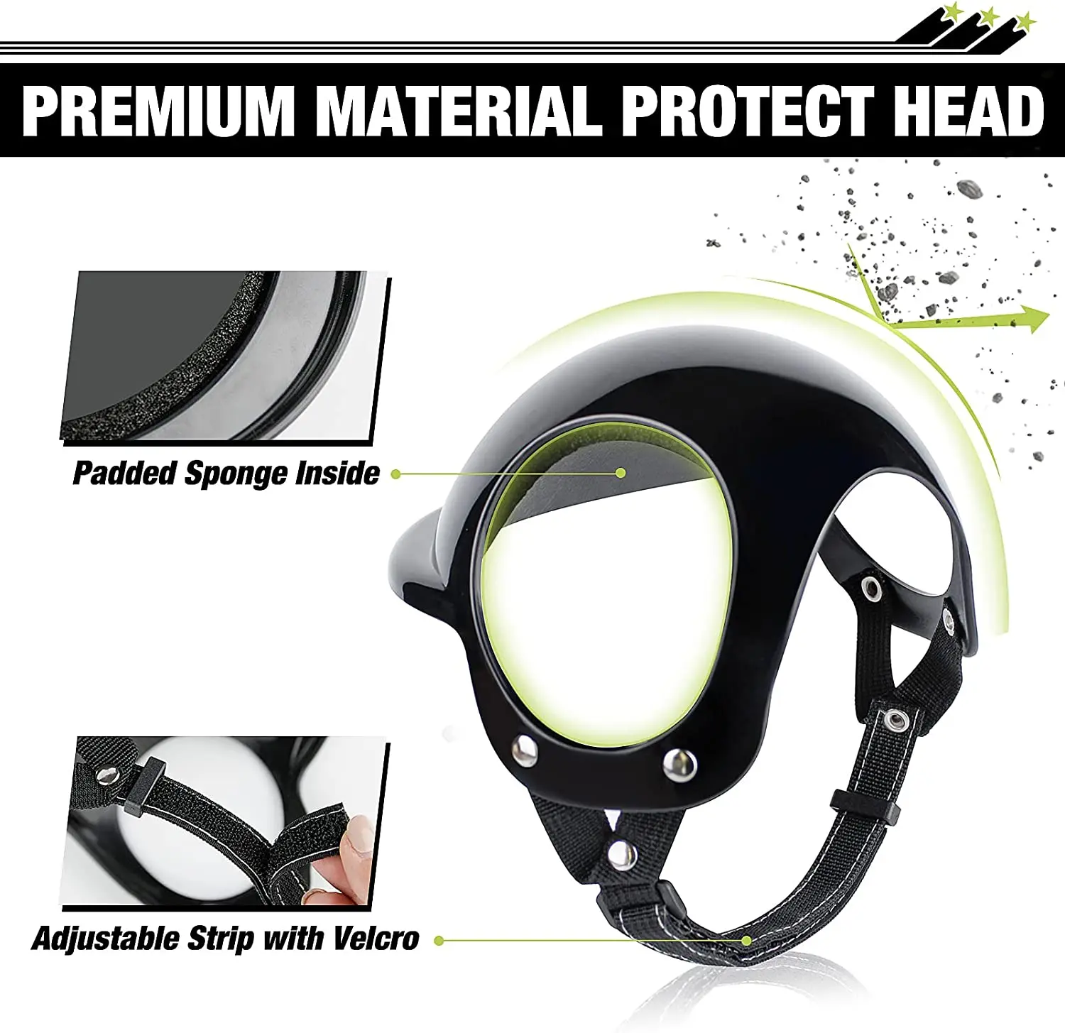 Con orificio para la oreja y Velcro ajustable son fáciles de ajustar, permite que el casco en la cabeza del perro para una mayor estabilidad y fijación completa.