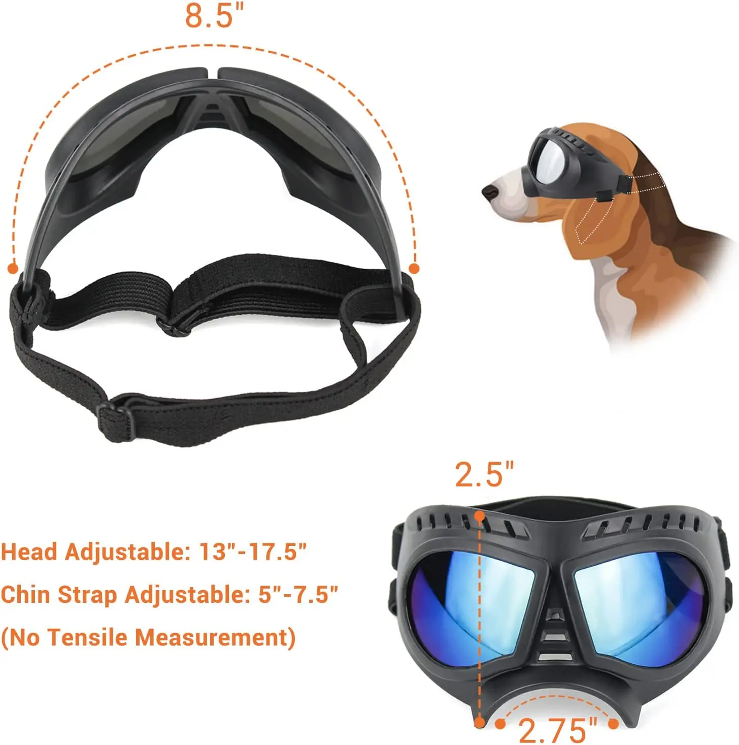 Las gafas para perros con cabeza L se adaptan a la mayoría de los perros medianos a grandes como pastor alemán, Pitbull, Lab, Gree, Husky, Doberman, Retriever, etc. Incluso la Gran Dana, San Bernardo. Adecuado para muchas razas de perros.