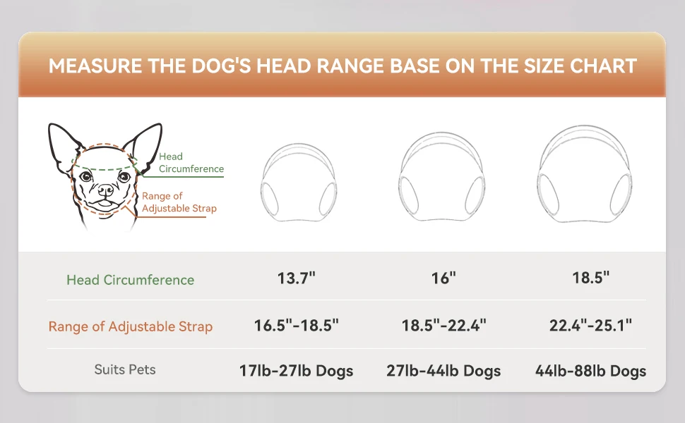 Casco para perro L tamaño de la cabeza a la barbilla ajustable 22,4"-25,1", apto para perros de aproximadamente 44 lb-88 lb, el ajuste dependerá de qué tan grande y de la circunferencia de la cabeza sea su perro, no de la raza.