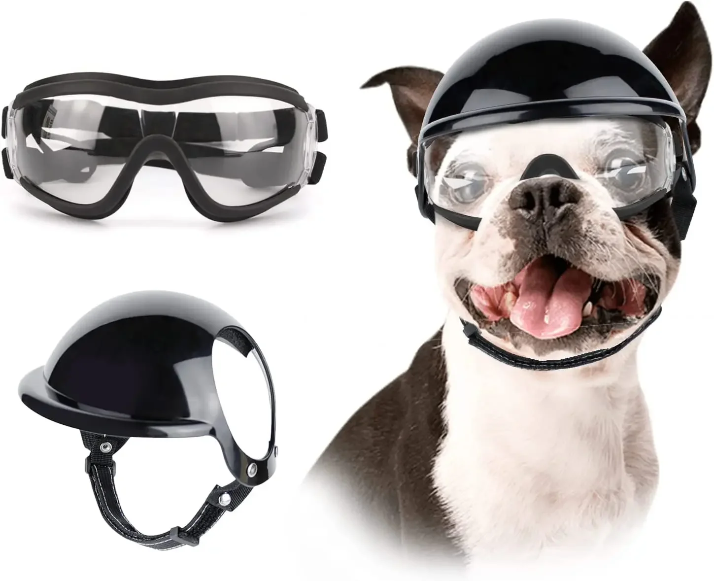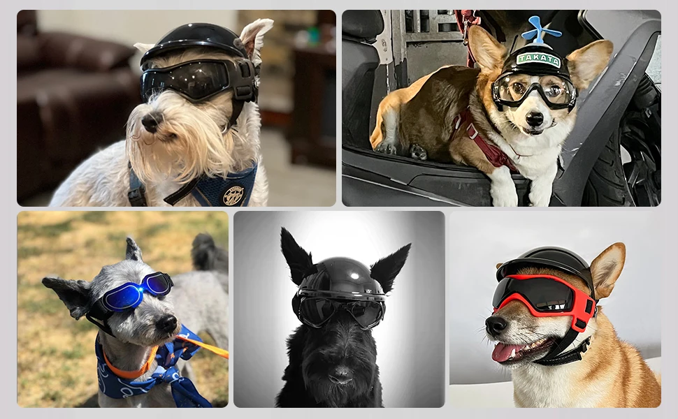 Casco duro para mascotas y gafas de sol para perros multideporte, sistema de ventilación suave que ayuda a proteger a los perros a disfrutar de correr, andar en bicicleta, conducir, viajar, etc.