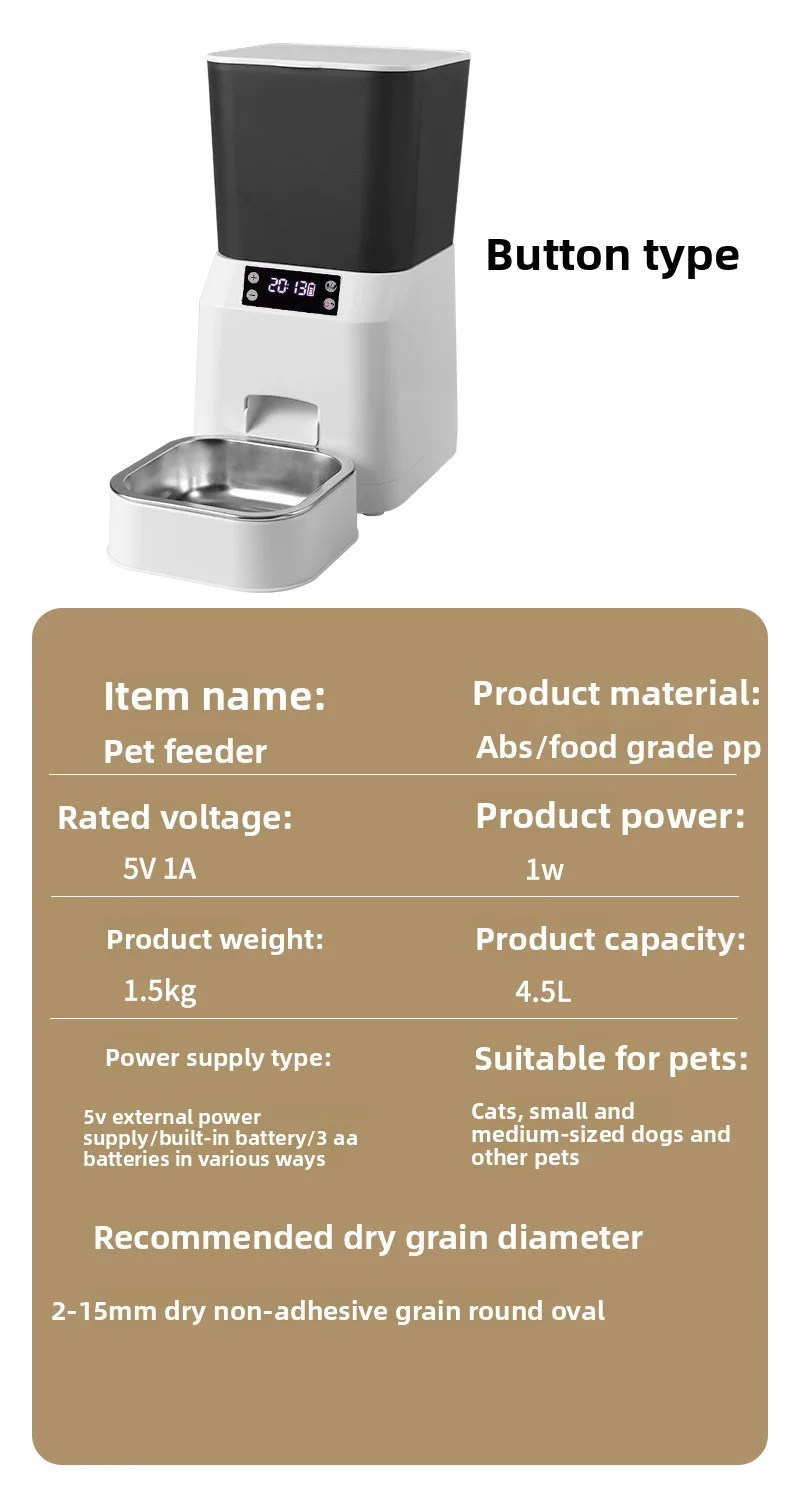 14.Puedes preparar 5 comidas al día (caída de 10 gramos cada vez, con niveles 1-18 y 2 iguales a 10 gramos+10 gramos).Ya no tendrá que preocuparse de que su querida mascota coma en exceso y podrá controlarla según el apetito de su mascota.