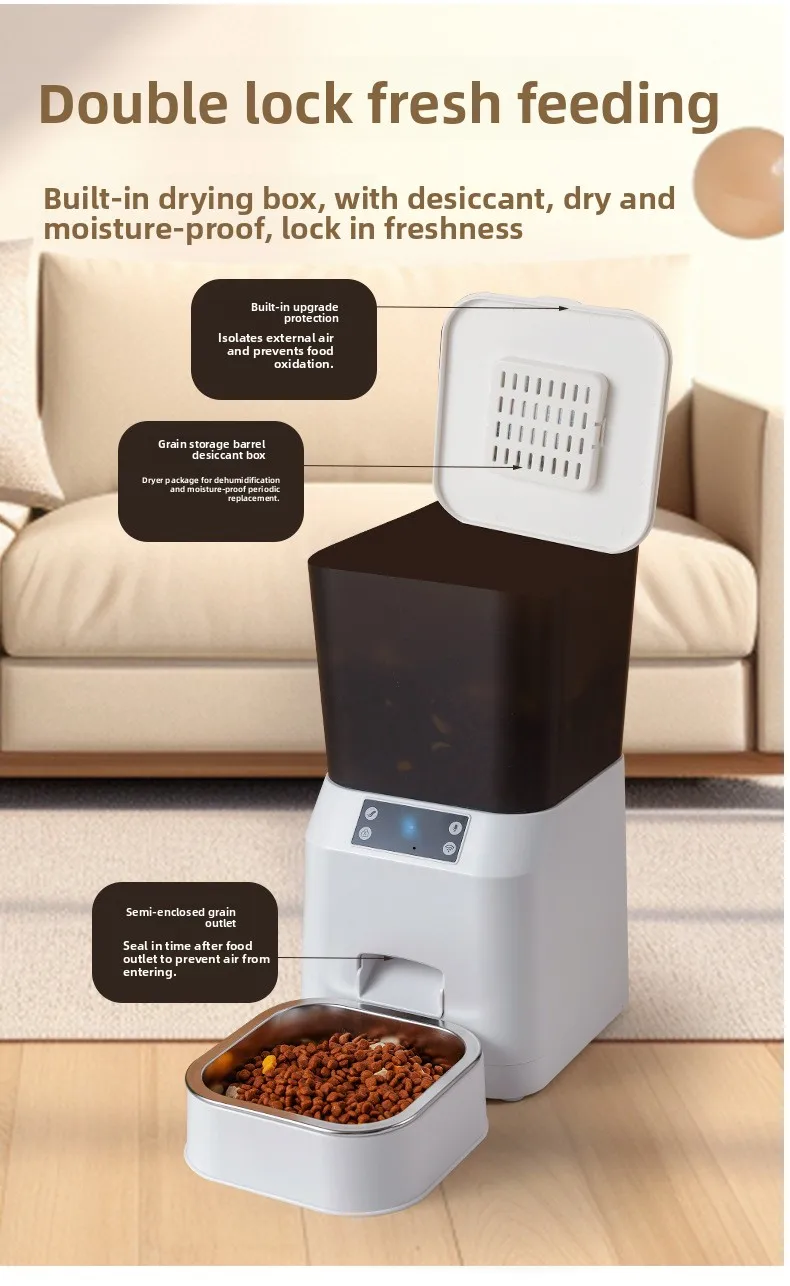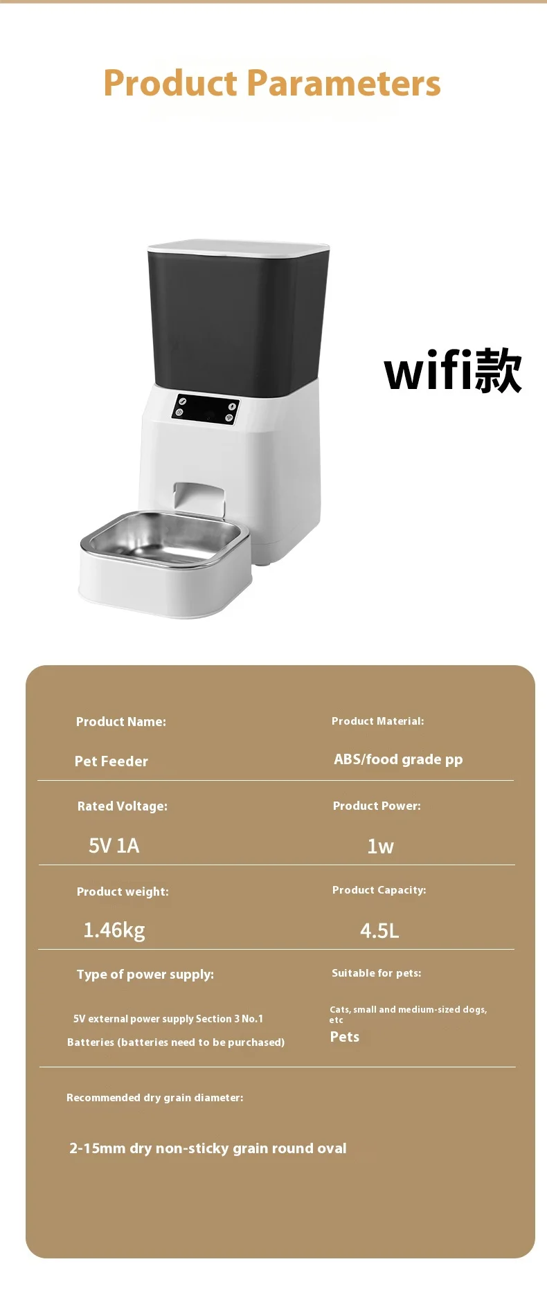 Funciones de WIFI: operación de aplicaciones móviles (puede escanear códigos para instalar y descargar software, ajustarse a su propio idioma), alimentación remota, dispensación programada, dispensación cuantitativa, función de grabación, batería incorporada (debe enchufarse para su uso porque WiFi consume mucha energía y debe estar conectado a una fuente de alimentación) (nota: WiFi debe estar conectado a WiFi y enchufado para su uso, el funcionamiento de la aplicación móvil no se limita a la distancia, si no hay WiFi en casa, presione el botón de carga USB